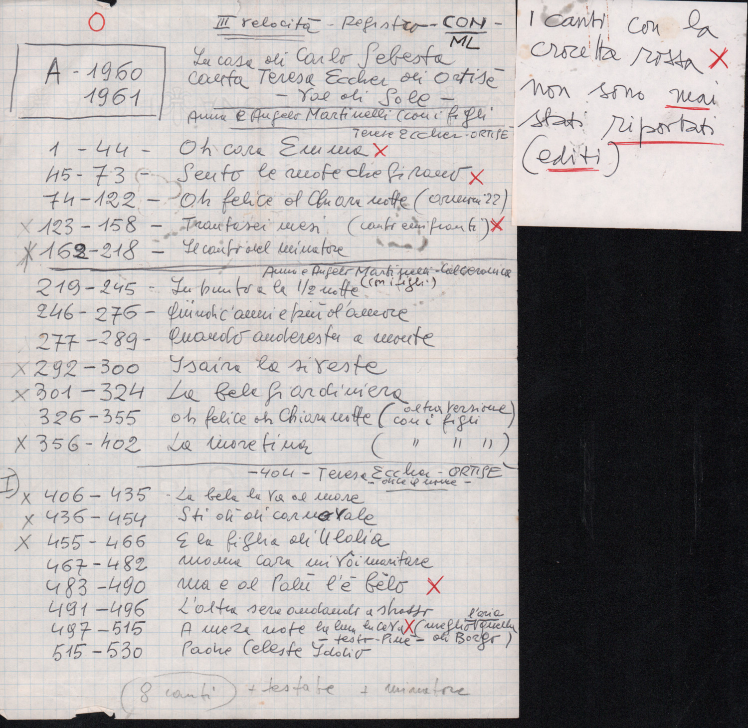Registrazioni di canti popolari effettuate da Silvio Pedrotti a Ortisé e Calceranica. Registrazioni di programmi radiofonici. 1960-1961. 1 bobina di nastro magnetico.