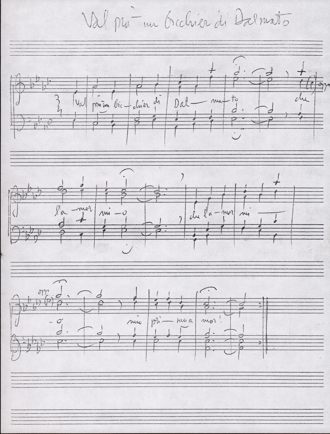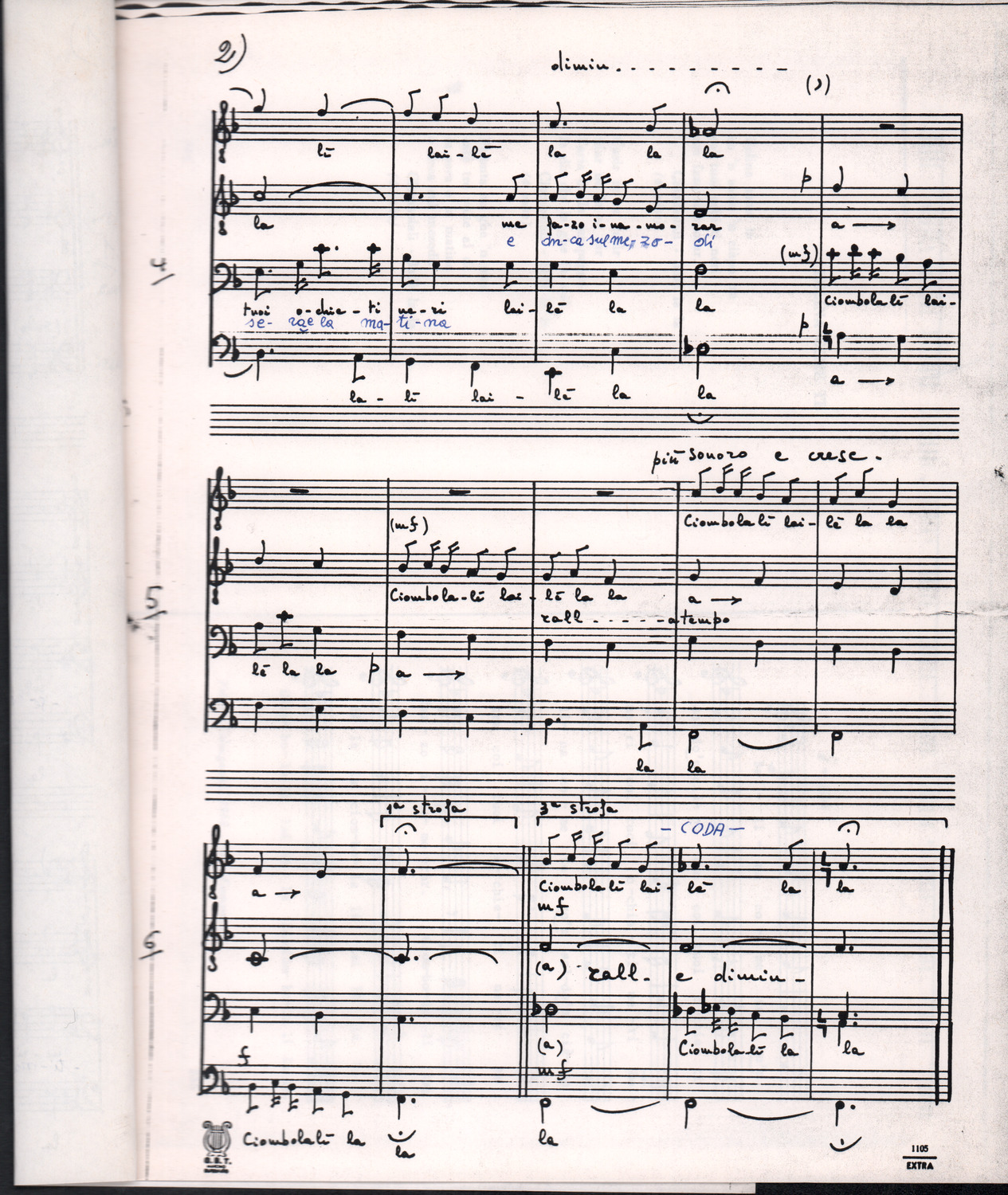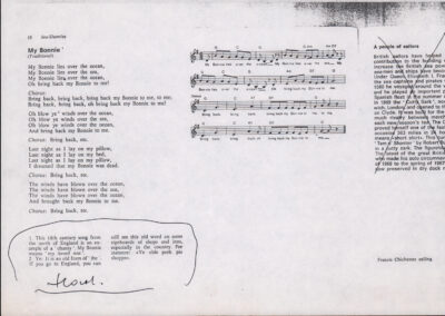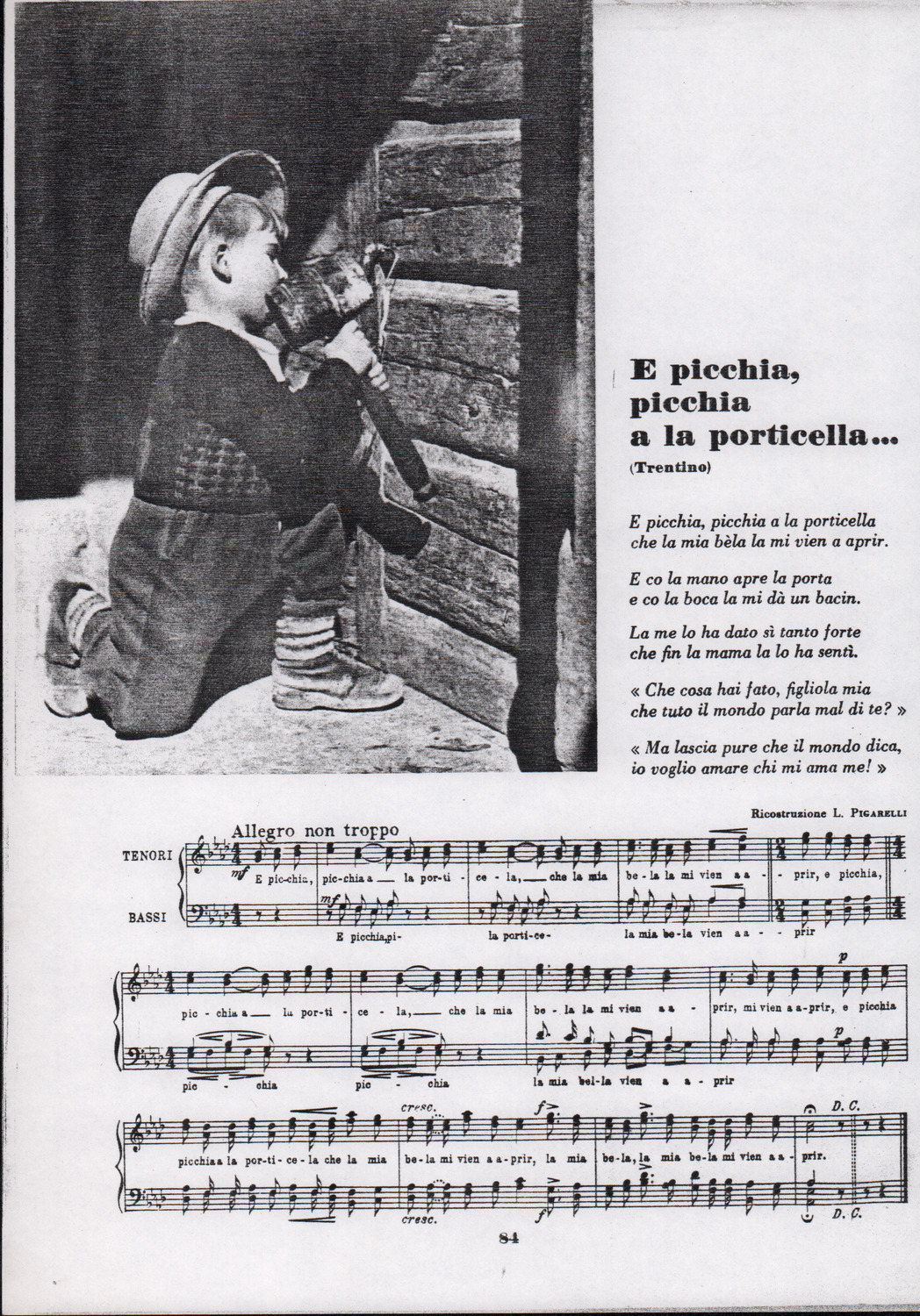 C.4.1.2 - Partiture e testi dei canti La mattina, Montagne mie vallate, Salve, salve la diva parola, Varda la luna, Val più un bicchier di Dalmato, E picchia, picchia a la porticella…, Morinèla. Fotocopie dalla seconda edizione dei Canti della montagna, 1948. Allegate 2 note manoscritte di Silvio Pedrotti. 8 cc.