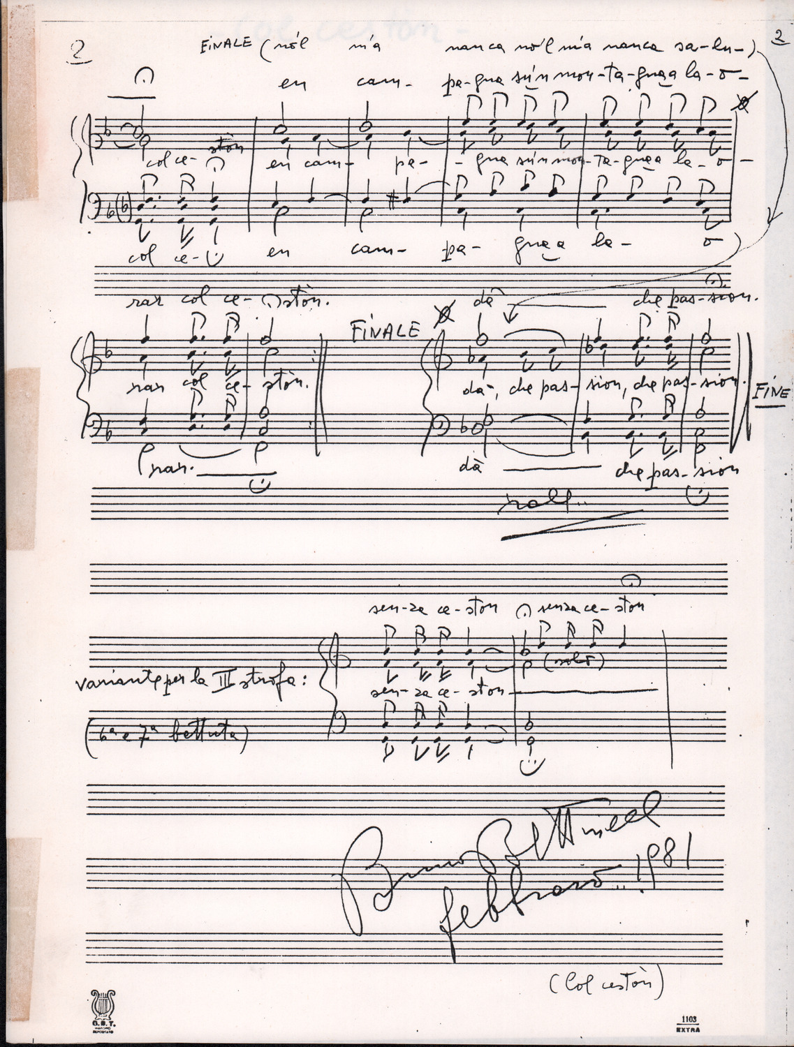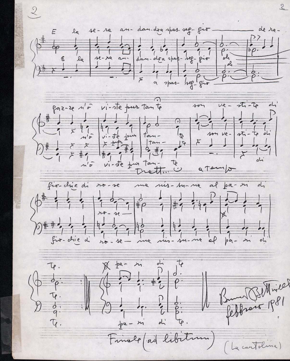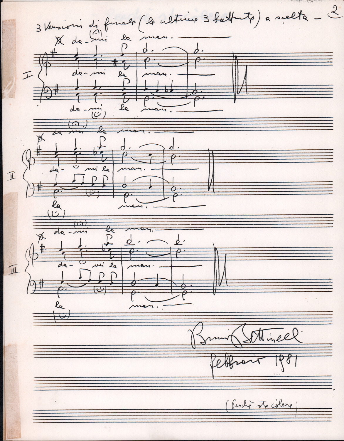 C.4.1.4 - Nota di Silvio Pedrotti relativa a partiture mancanti di Renato Dionisi. 1 c.