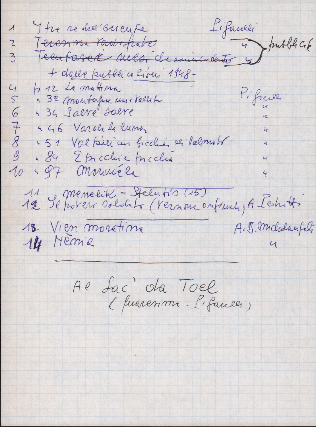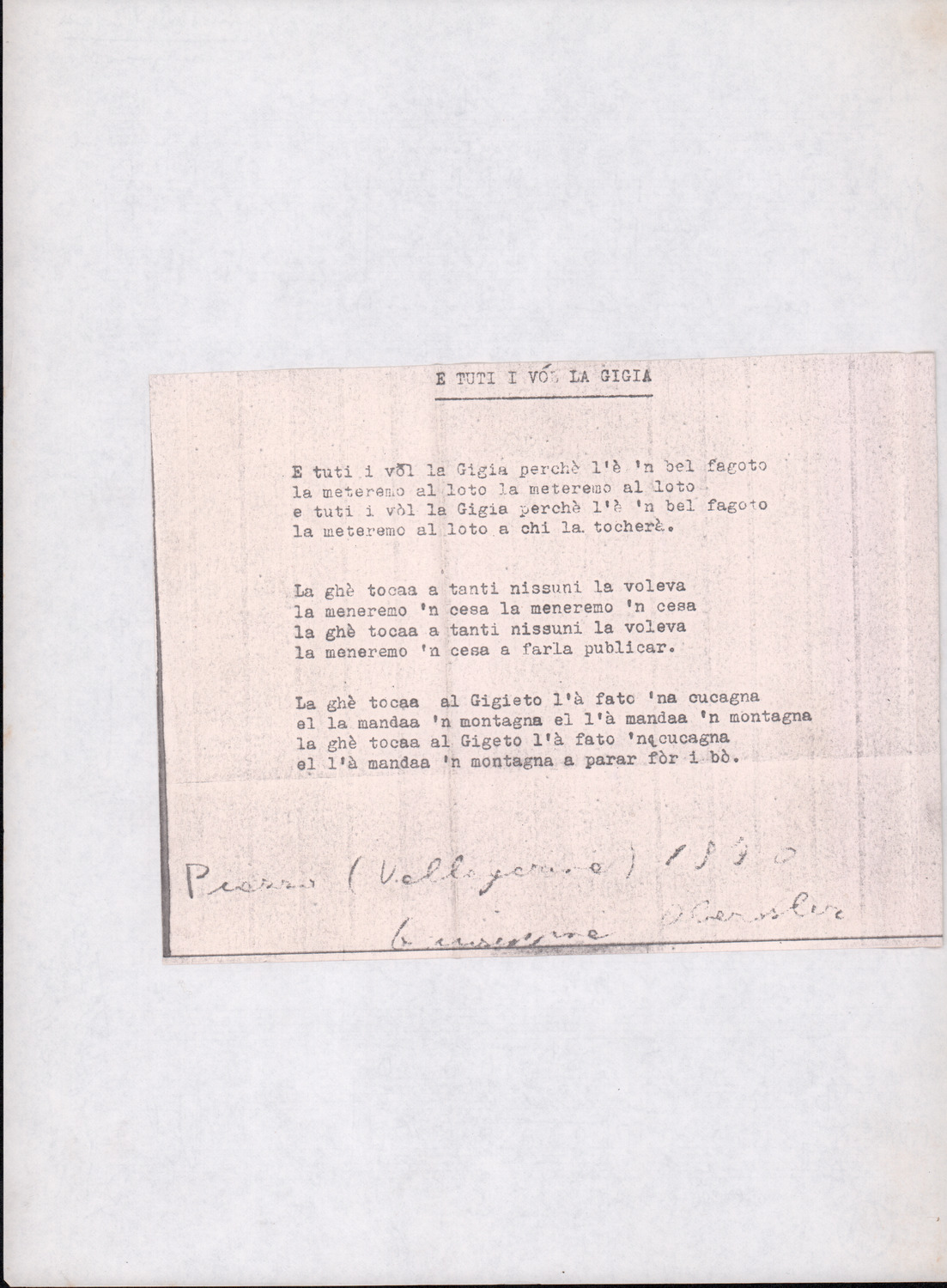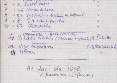 C.4.1.5 - Nota di Silvio Pedrotti con elenco dei canti raccolti nel fascicolo. 2 cc.