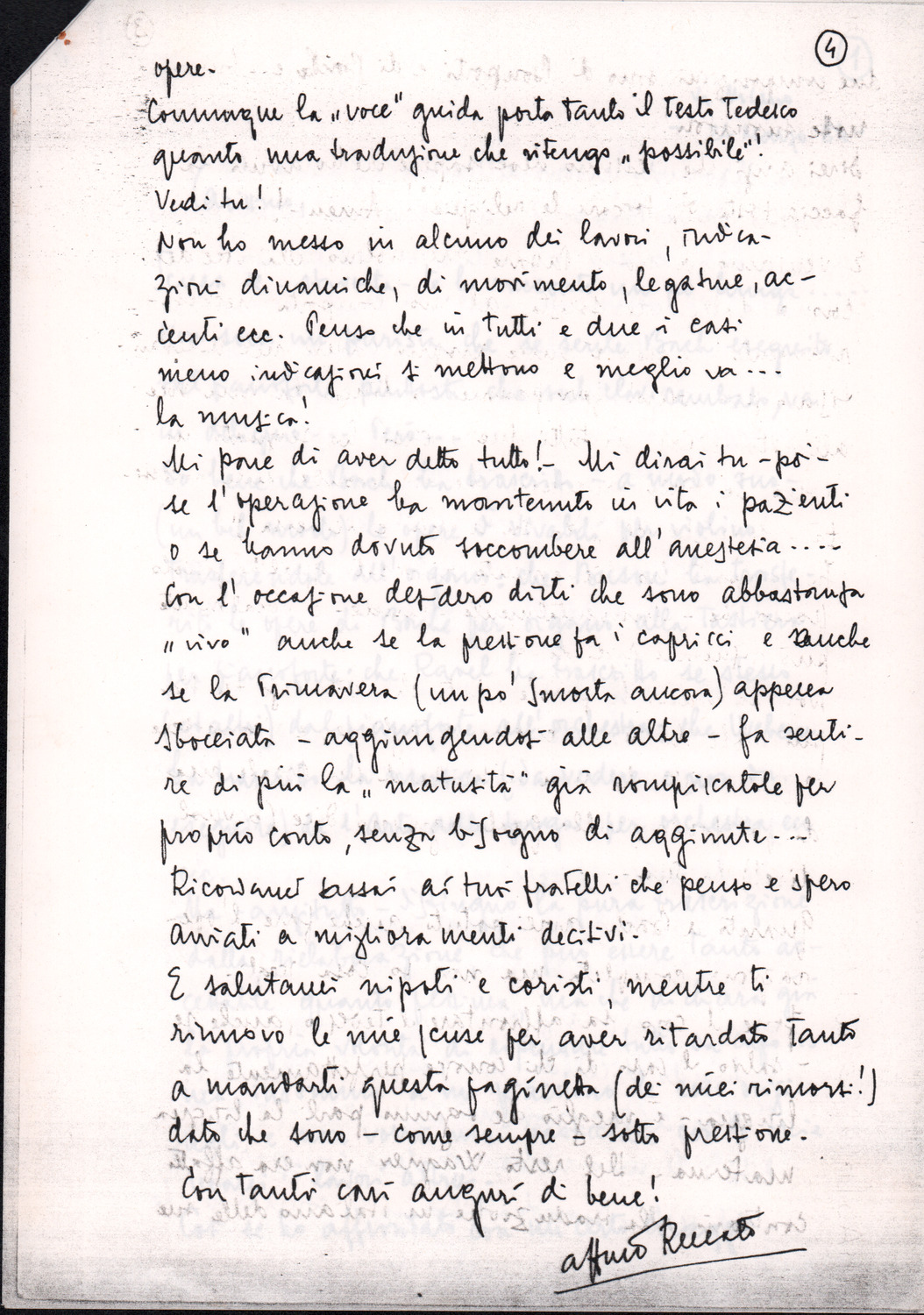 C.4.1.3 - Renato Dionisi a Silvio Pedrotti. Milano, 1984 marzo 24. Fotocopia dell’originale. 4 cc.