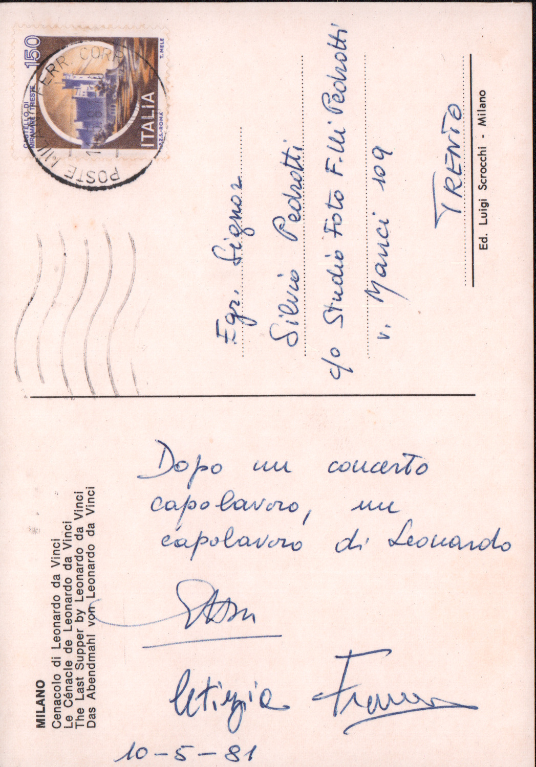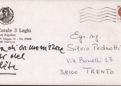 D.2.2.15 - Franco a Silvio Pedrotti. Milano, 1981 maggio 10. 1 cartolina.