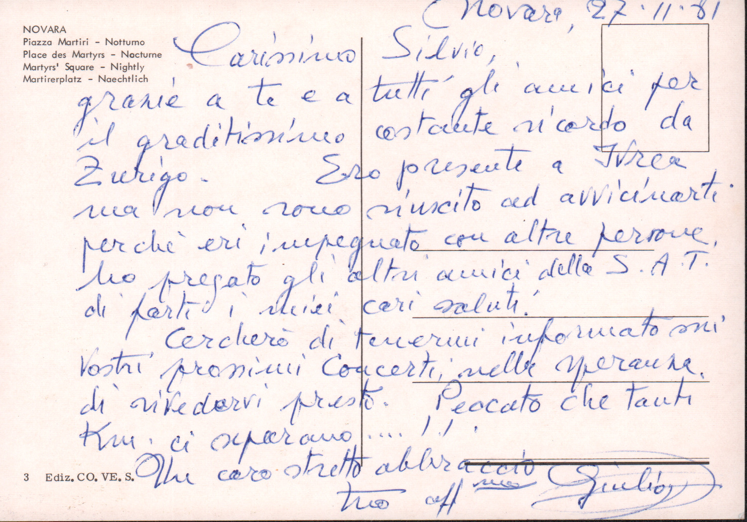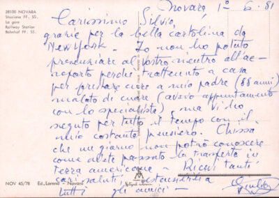 D.2.2.24 - Giulio a Silvio Pedrotti. Novara, 1981, novembre 27. 1 cartolina.