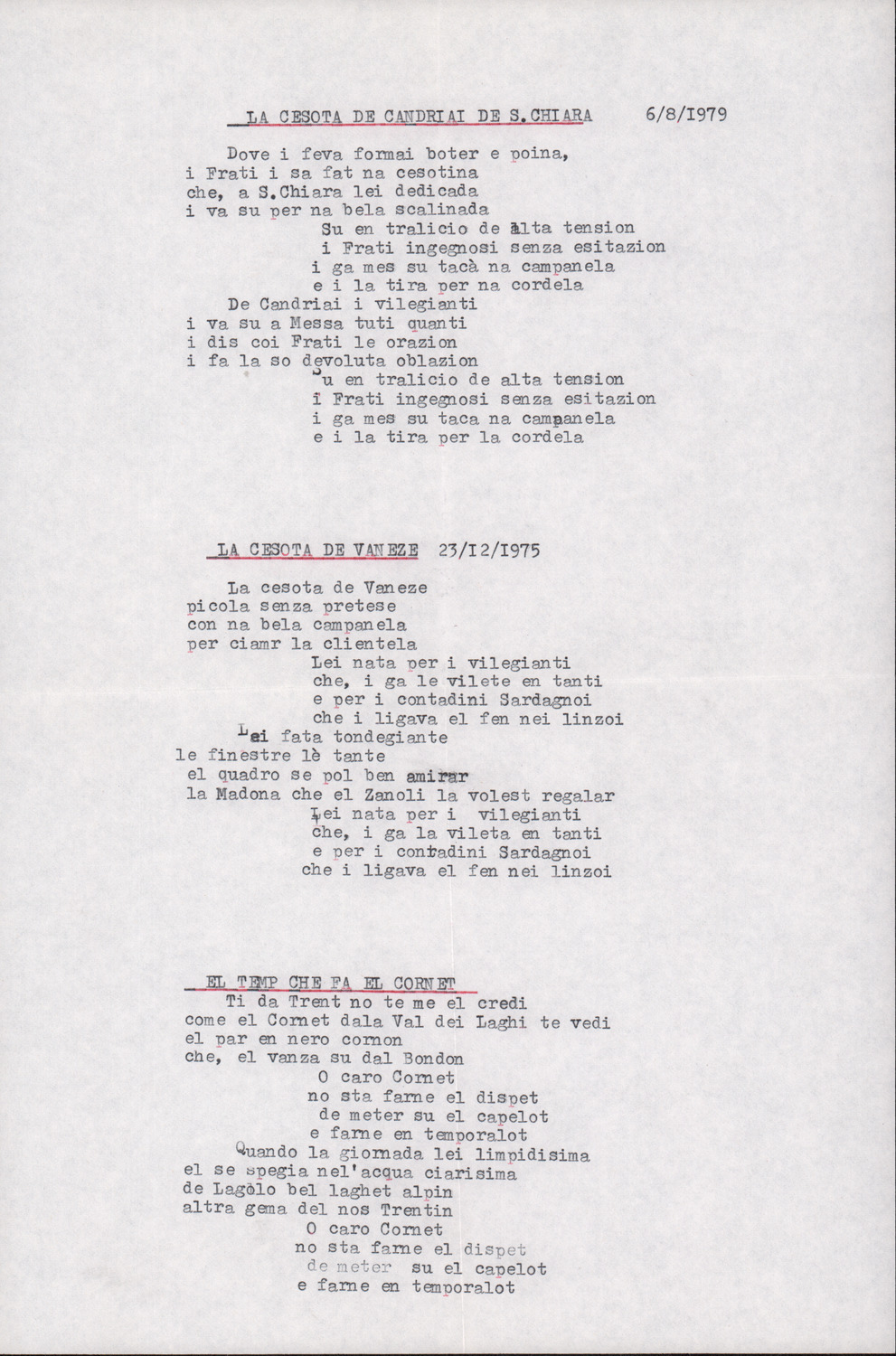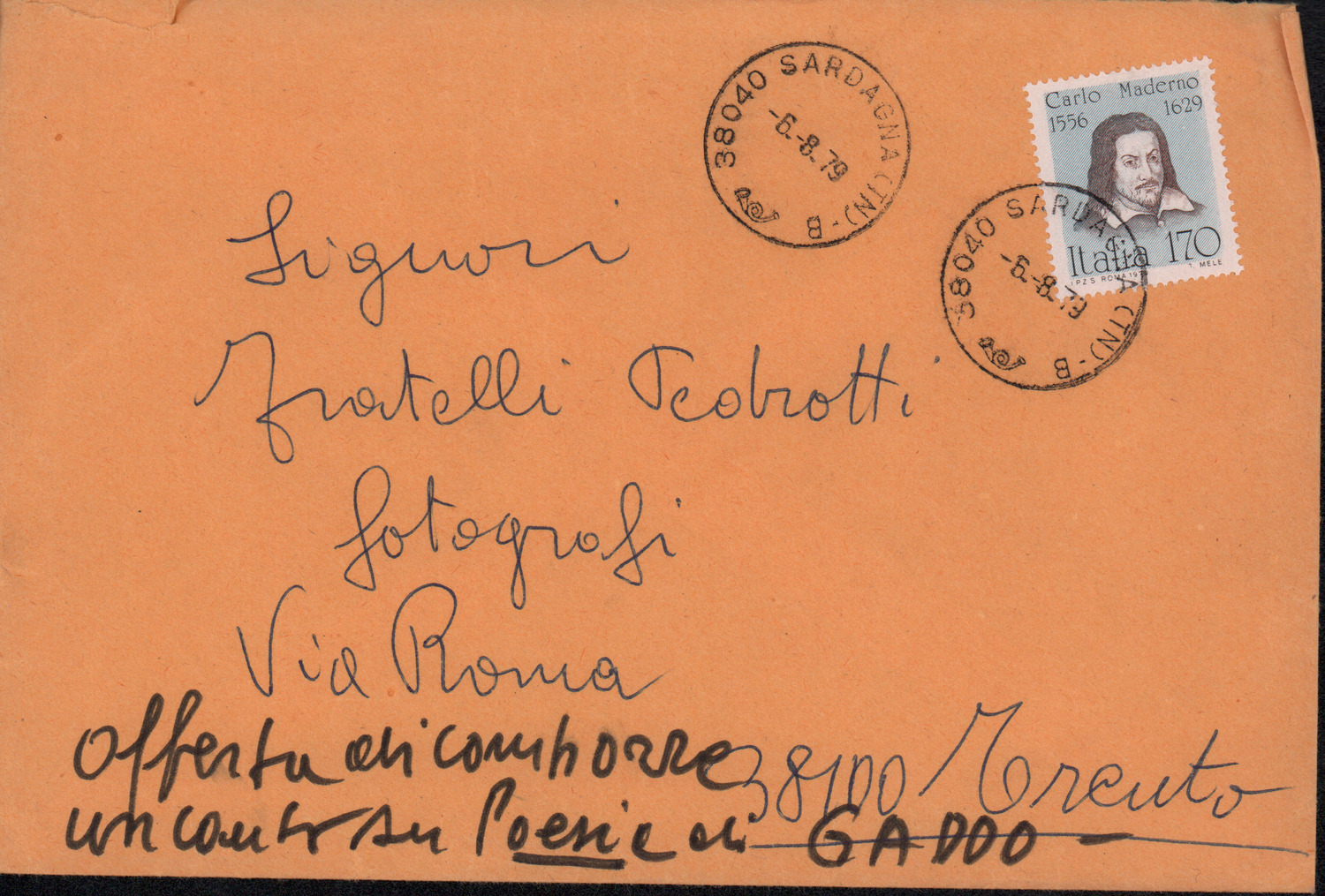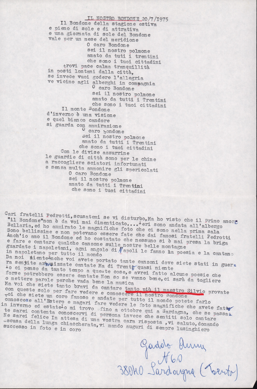 D.2.2.2 - Anna Gaddo a Silvio Pedrotti. Sardagna, 1979 agosto 6. 2 cc. dattiloscritte.