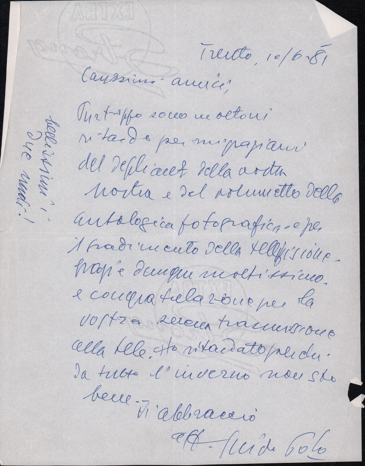 D.2.2.21 - Guido Polo a Silvio Pedrotti. Trento, 1981 giugno 10. 1 c.