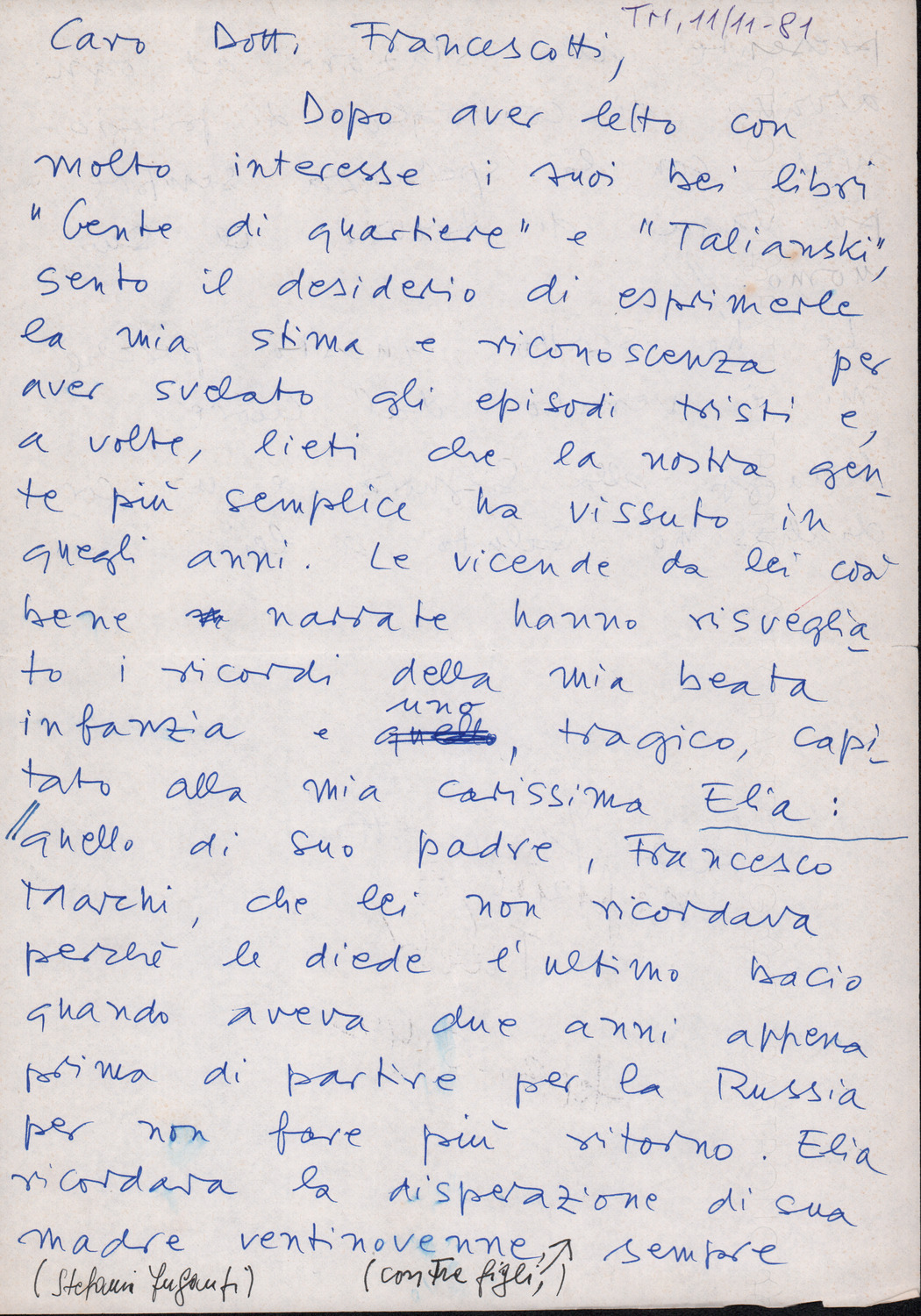 D.2.2.23 - Silvio Pedrotti a Renzo Francescotti. Trento, 1981 novembre 11. 1 c.