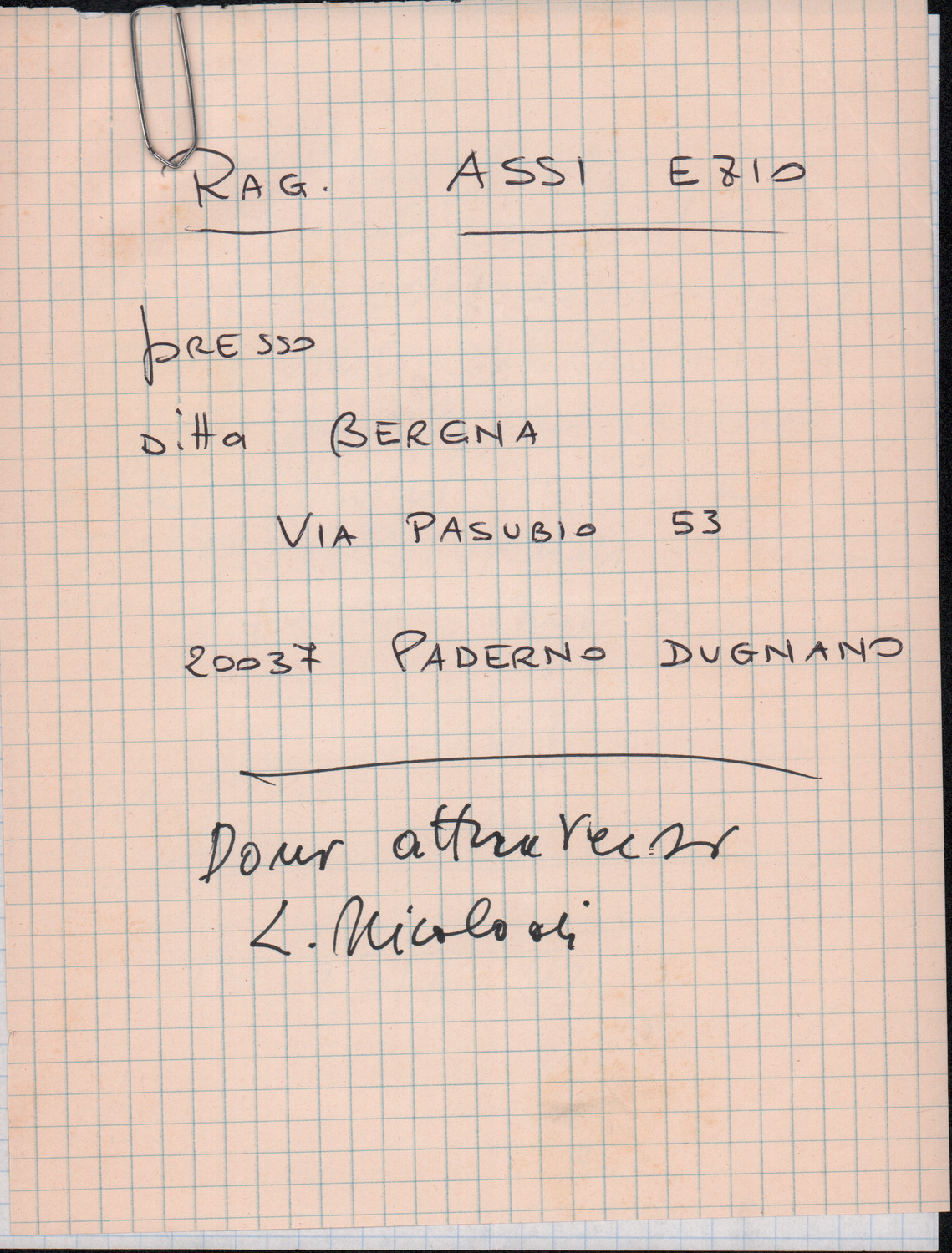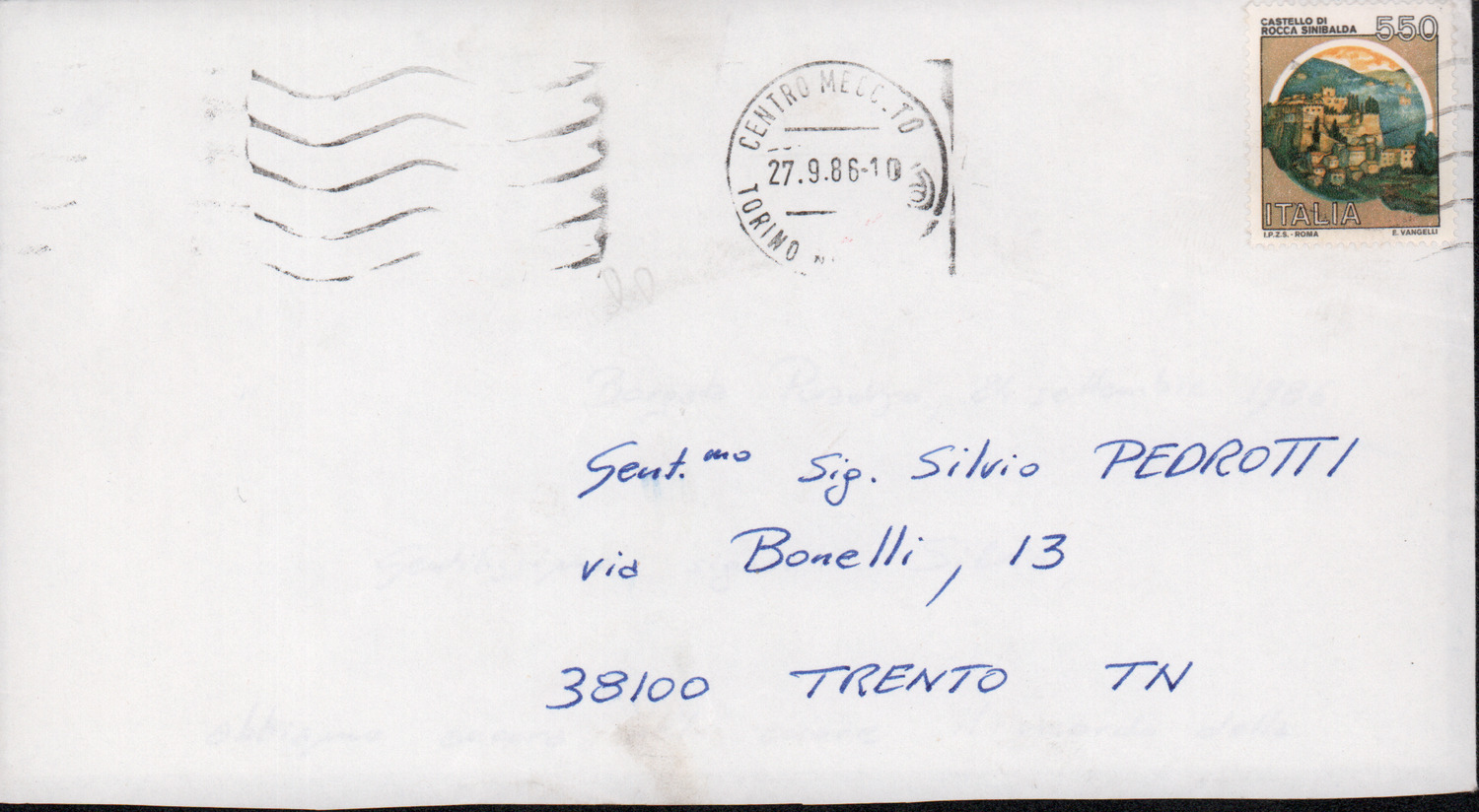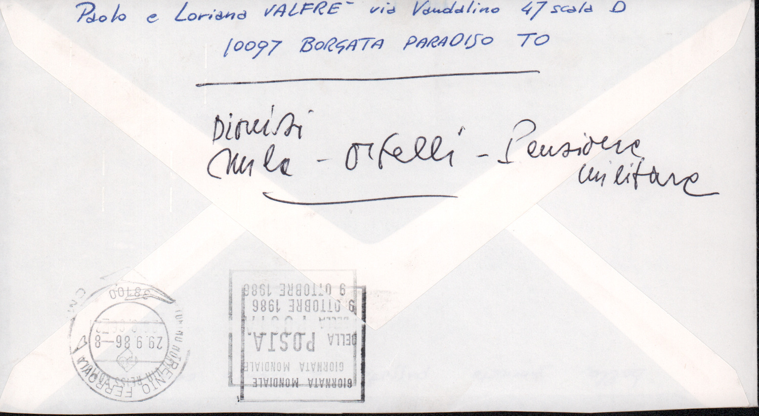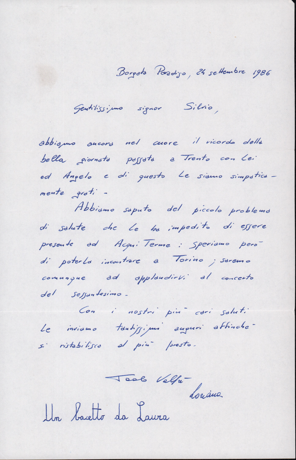 D.2.2.34 - Paolo Valfré a Silvio Pedrotti. Borgata Paradiso, 1986 settembre 24. 1 c.