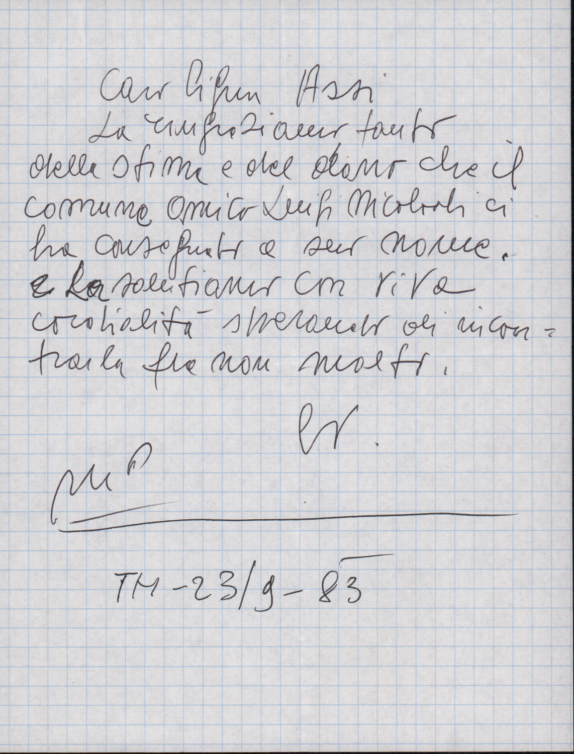 D.2.2.27 - Silvio Pedrotti a Ezio Assi. Trento, 1983 settembre 23. 2 cc.
