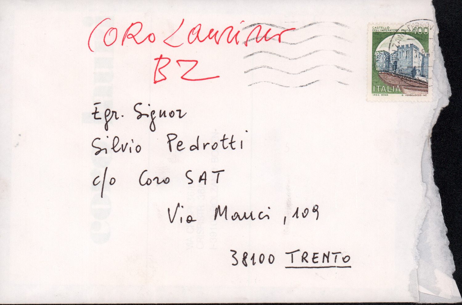 D.2.2.41 - Silvio Pedrotti a Mario Pevarello. S.l., s.d. 1 c.