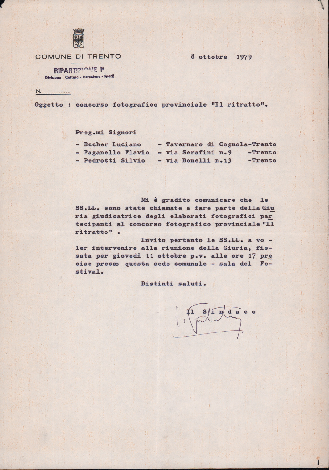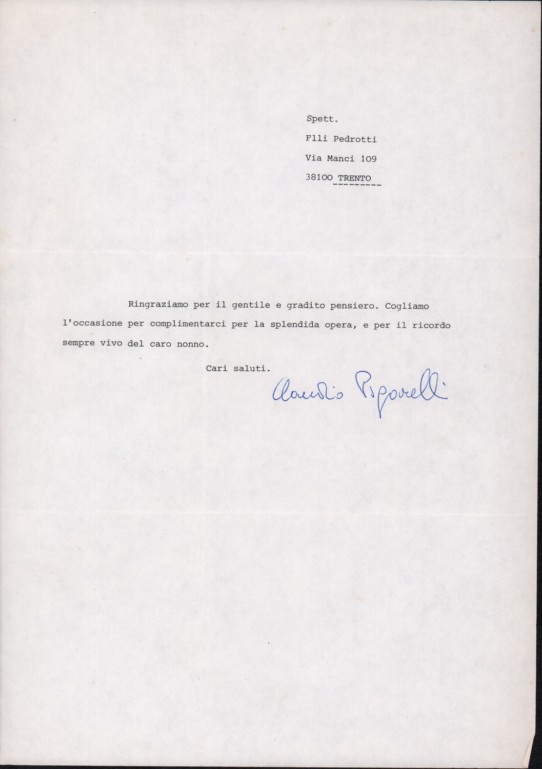 D.2.2.4 - Silvio Pedrotti a Pier Luigi Morghen. Trento, 1979 novembre 15. 1 c.
