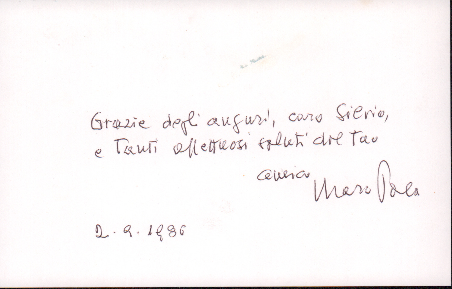 D.2.2.33 - Marco Pola a Silvio Pedrotti. Trento, 1986 settembre 2. 1 c.