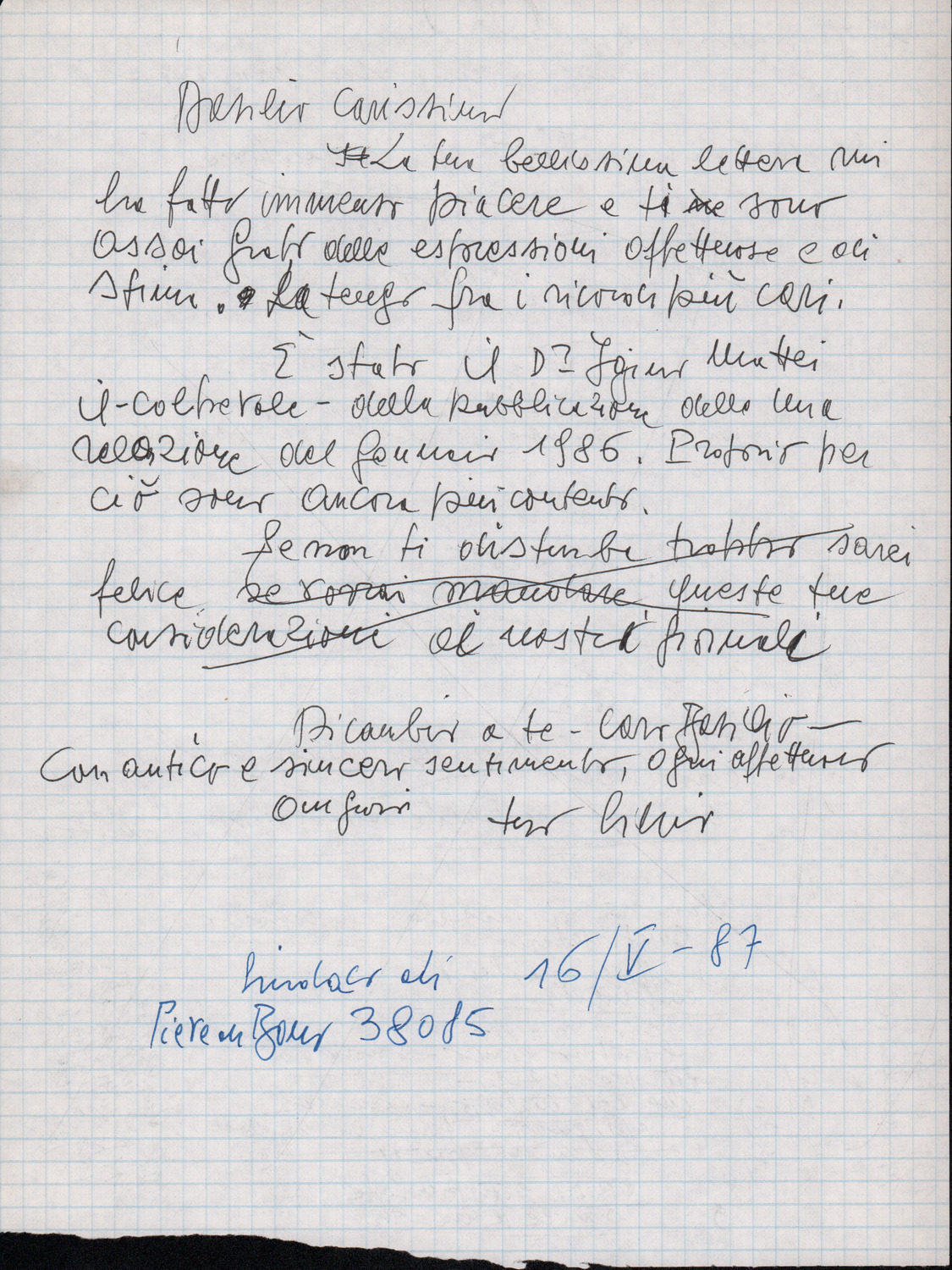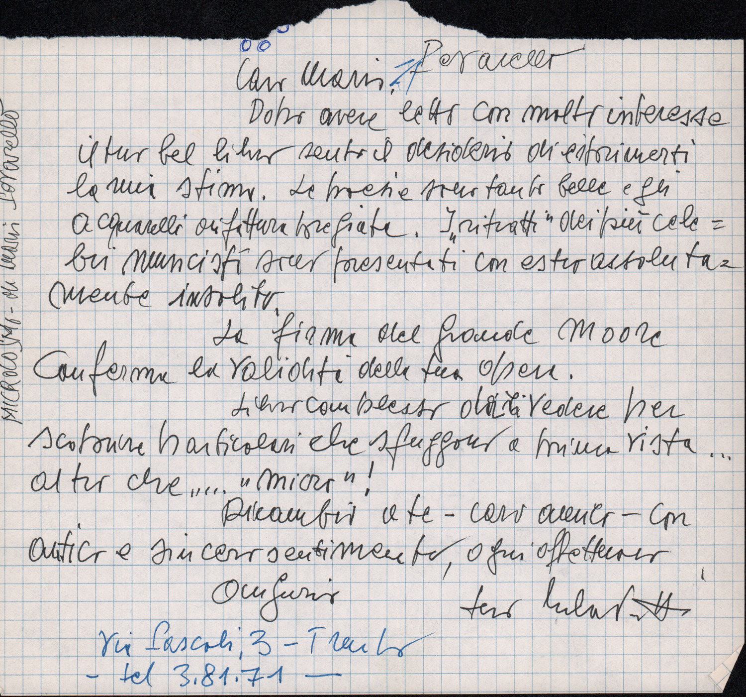 D.2.2.37 - Silvio Pedrotti a Basilio Mosca. Trento, 1987 maggio 16. 1 c.