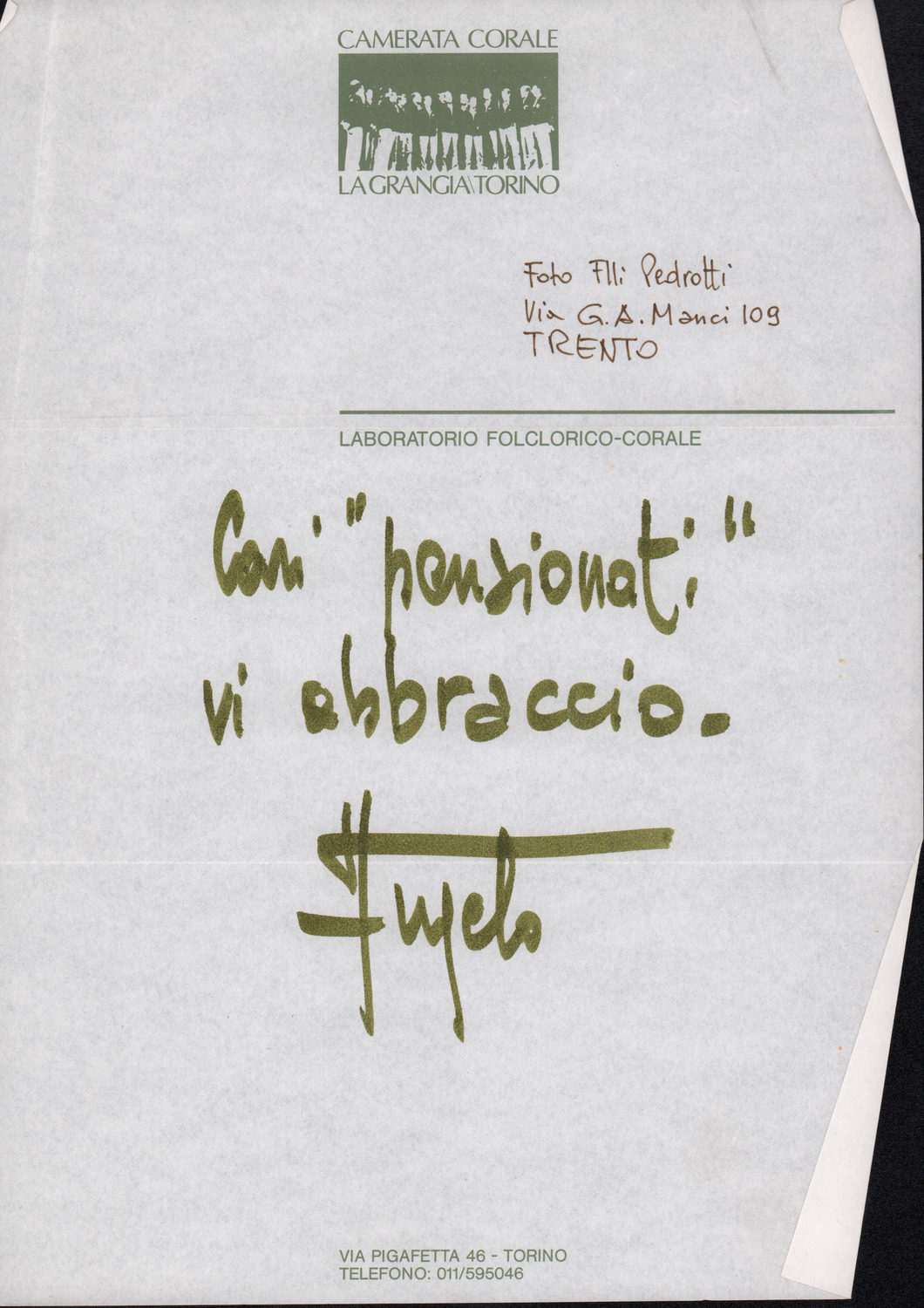 D.2.2.44 - Claudio Pigarelli a Silvio Pedrotti. S.l., s.d. 1 c.