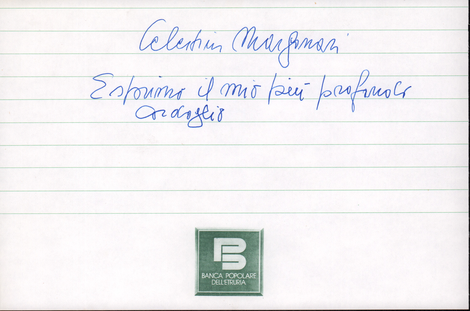 D.2.2.46 - Biglietto di condoglianze per la morte di Celestino Margonari. S.l., s.d. 1 c.