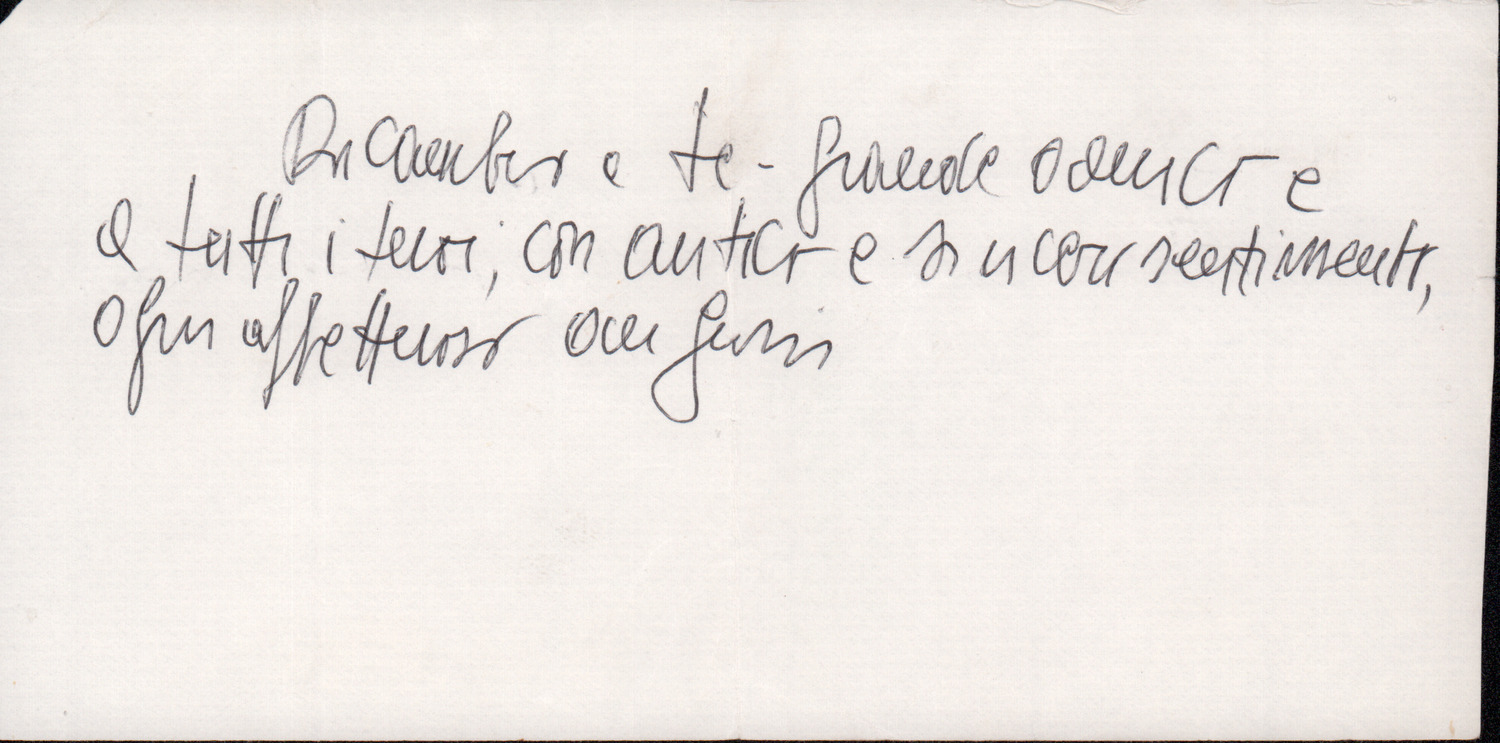 D.2.2.47 - Biglietto di Silvio Pedrotti con augurio, senza destinatario indicato. S.l., s.d. 1 c.