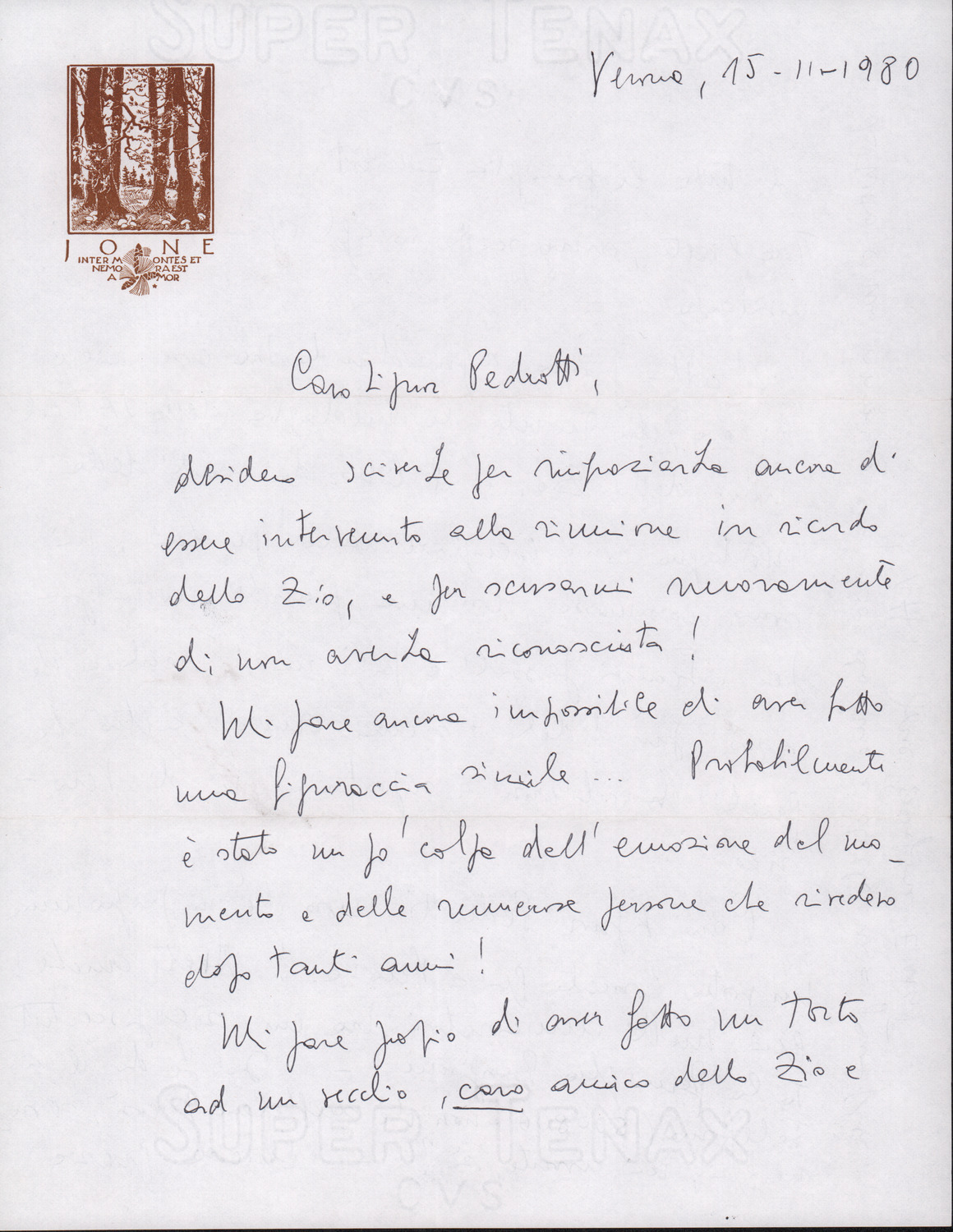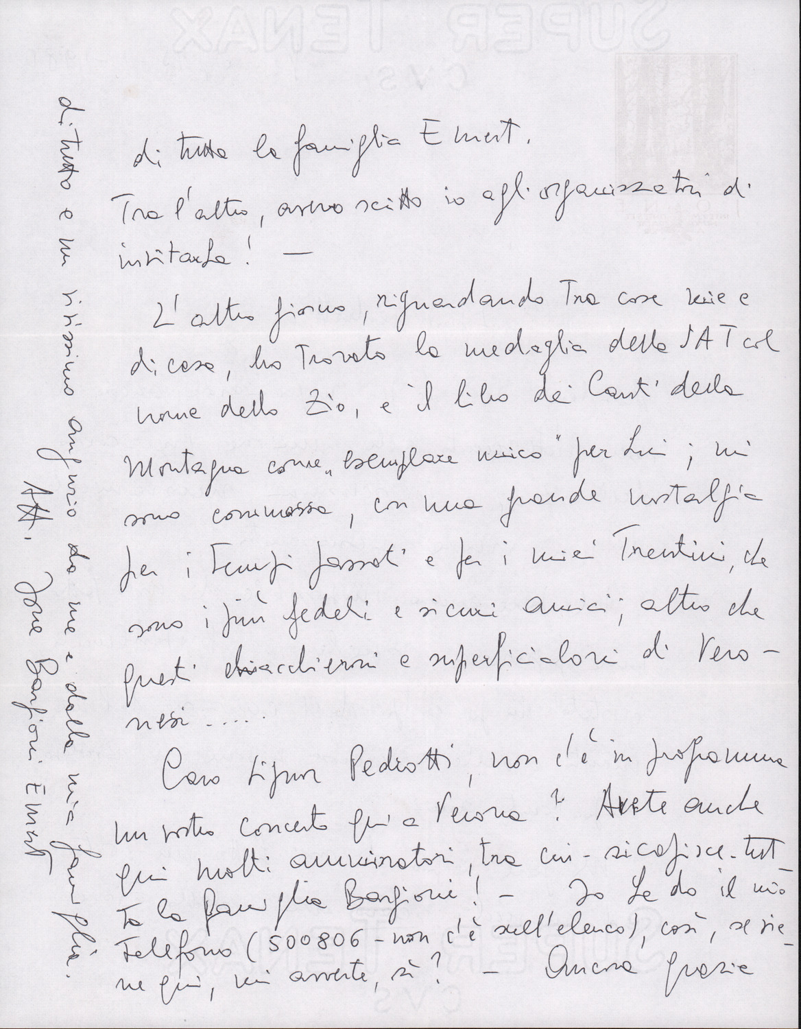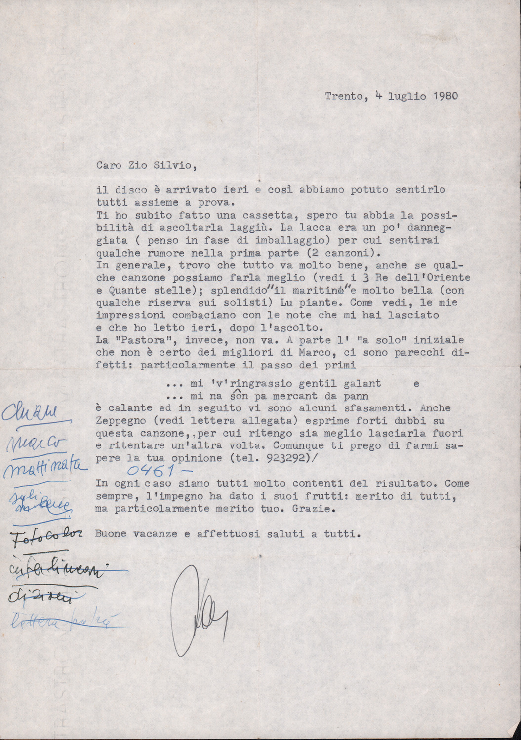 D.2.2.8 - Mauro Pedrotti? a Silvio Pedrotti. Trento, 1980 luglio 4. 1 c.