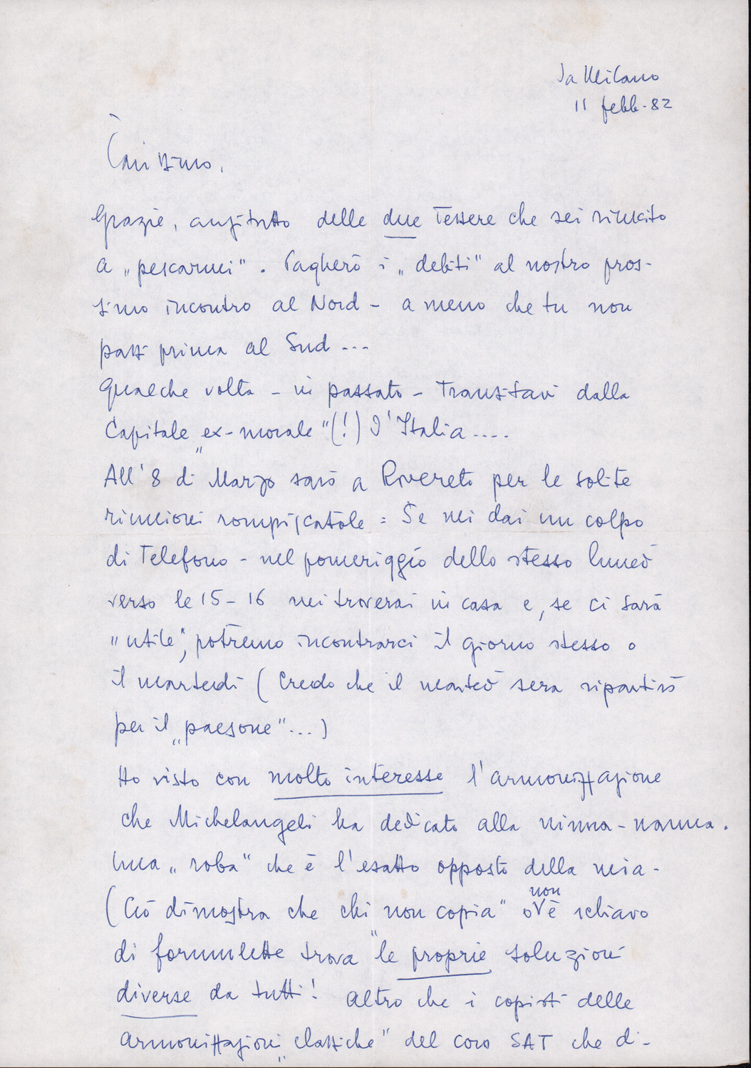 D.3.1.16 - Renato Dionisi a Silvio Pedrotti. Milano, 1982 febbraio 11. 1 c.