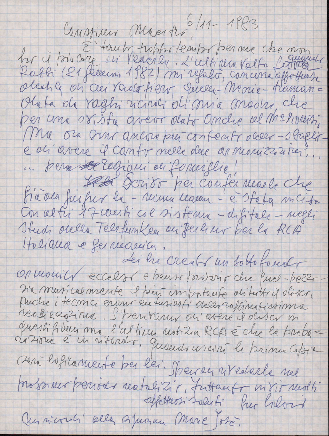 D.3.1.17 - Silvio Pedrotti ad Arturo Benedetti Michelangeli. Trento, 1983 novembre 6. 1 c.