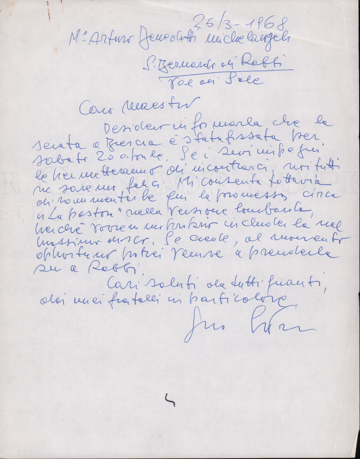 D.3.1.3 - Silvio Pedrotti ad Arturo Benedetti Michelangeli. Trento, 1968 marzo 25. 1 c.