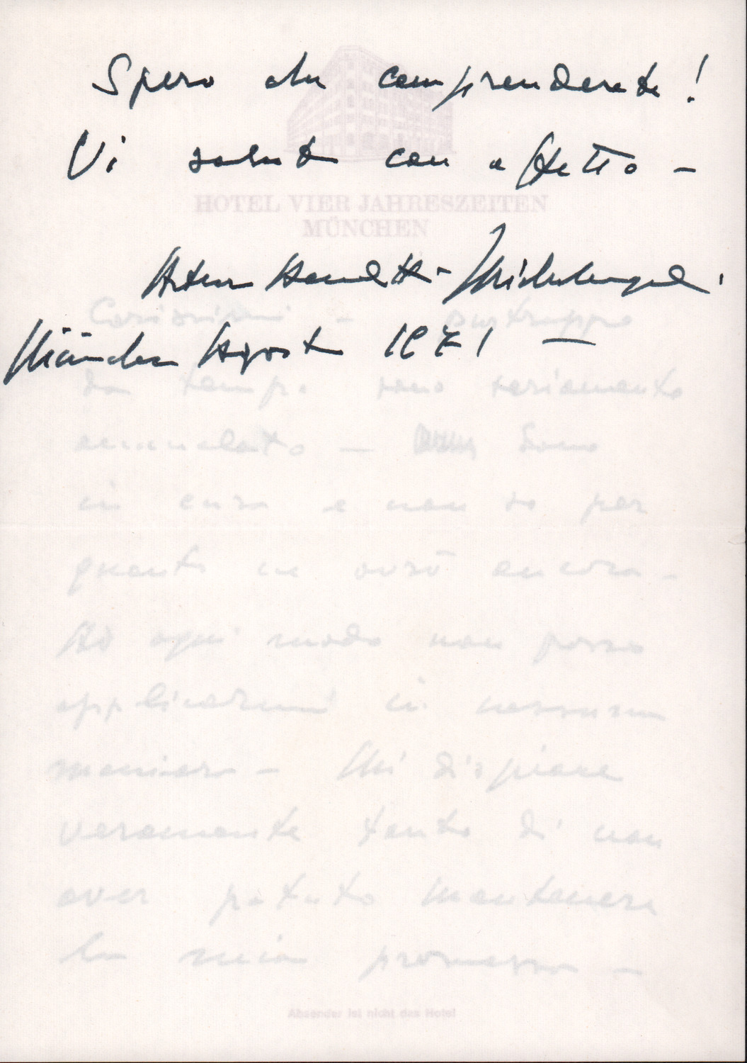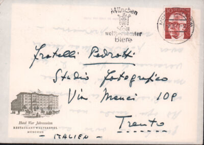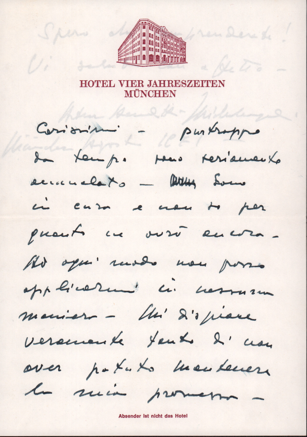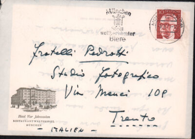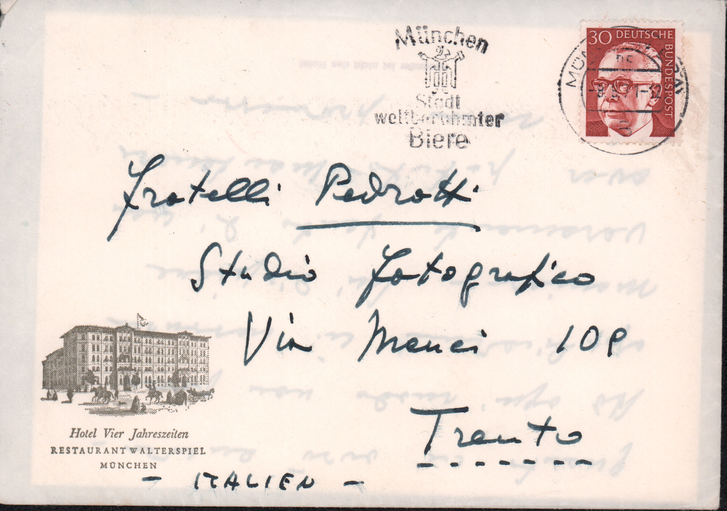 D.3.1.6 - Arturo Benedetti Michelangeli a Silvio Pedrotti. Monaco di Baviera, 1971 agosto. 1 c. con busta.