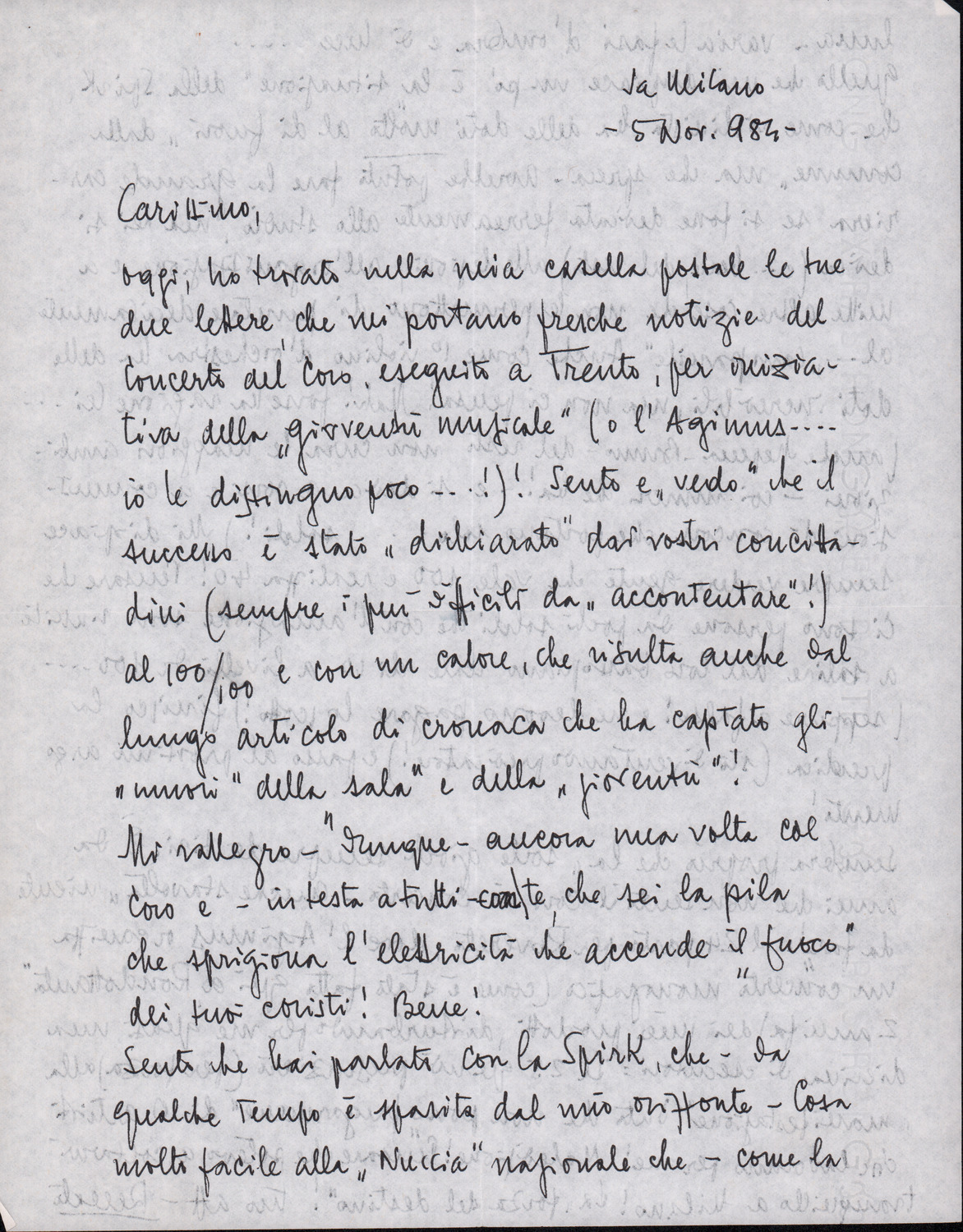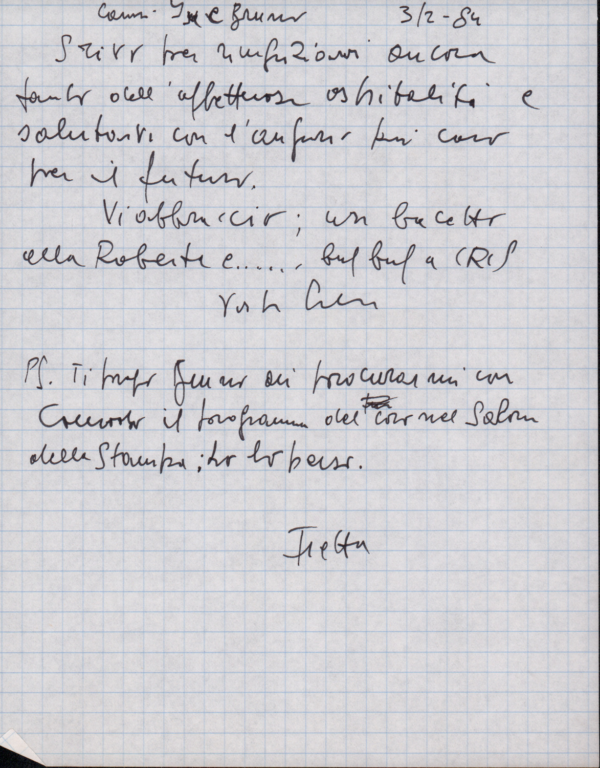 D.4.2.10 - Renato Dionisi a Silvio Pedrotti. Milano, 1984 novembre 5. 1 c.