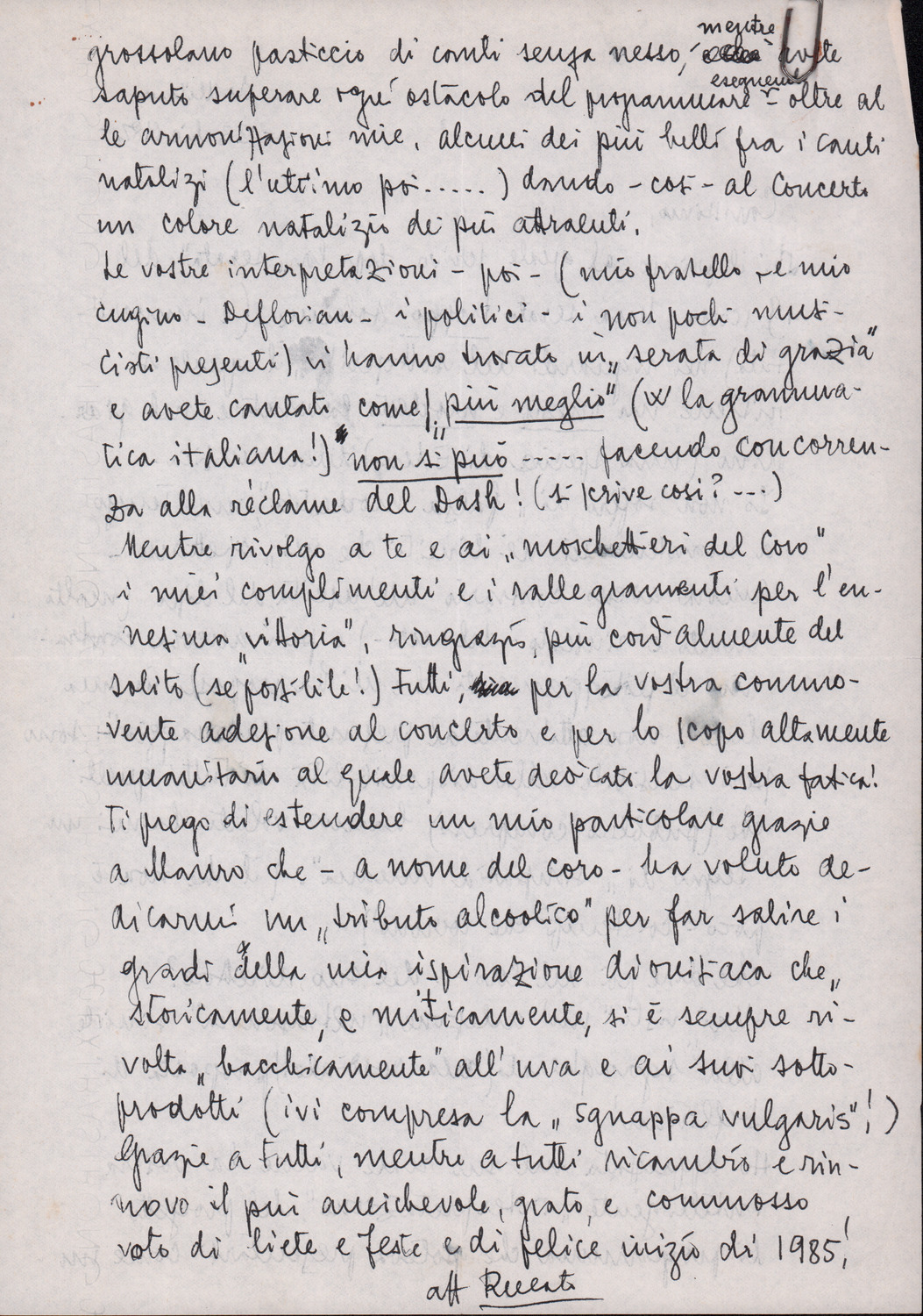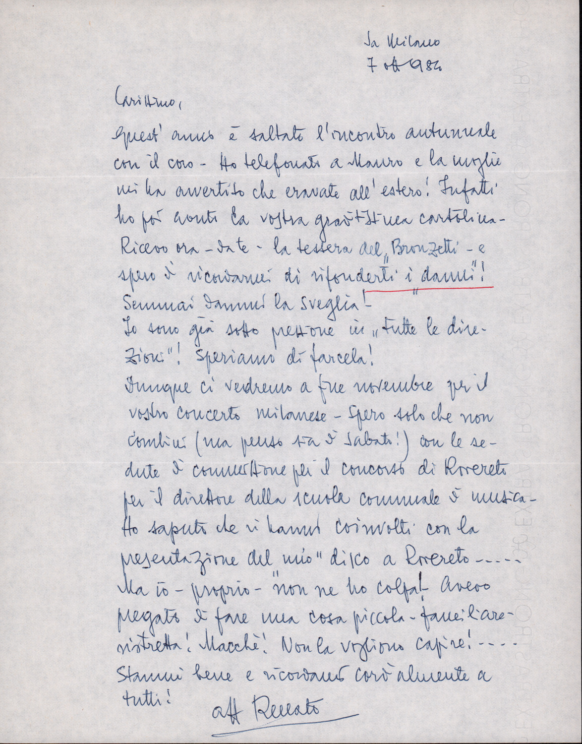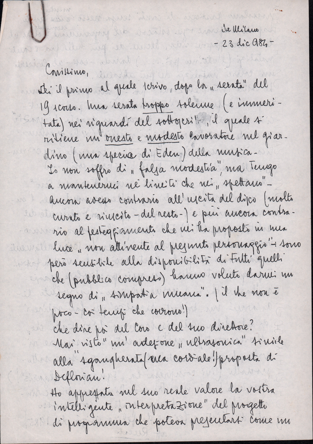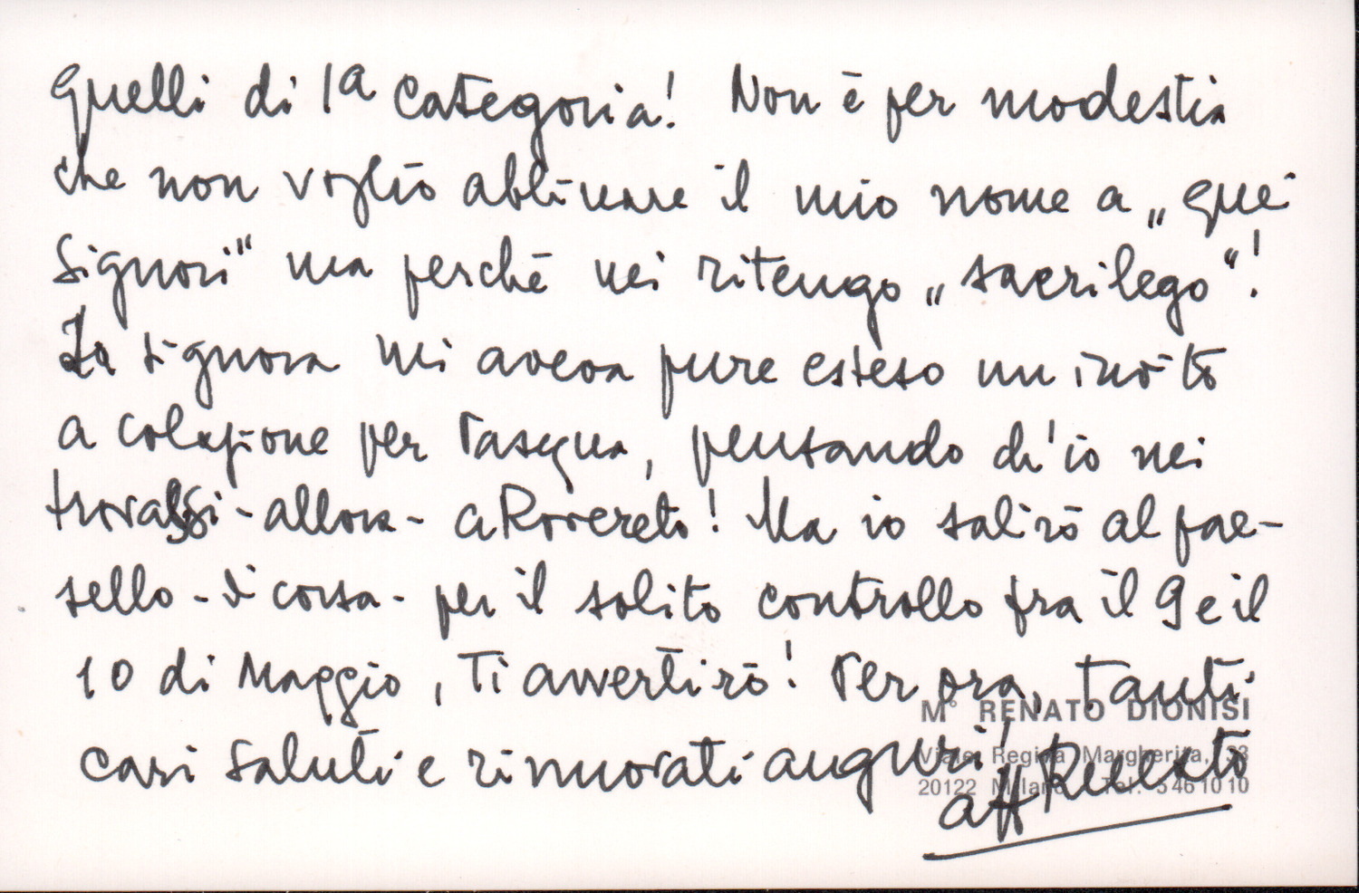 D.4.2.12 - Renato Dionisi a Silvio Pedrotti. Milano, 1984 dicembre 23. 1 c.