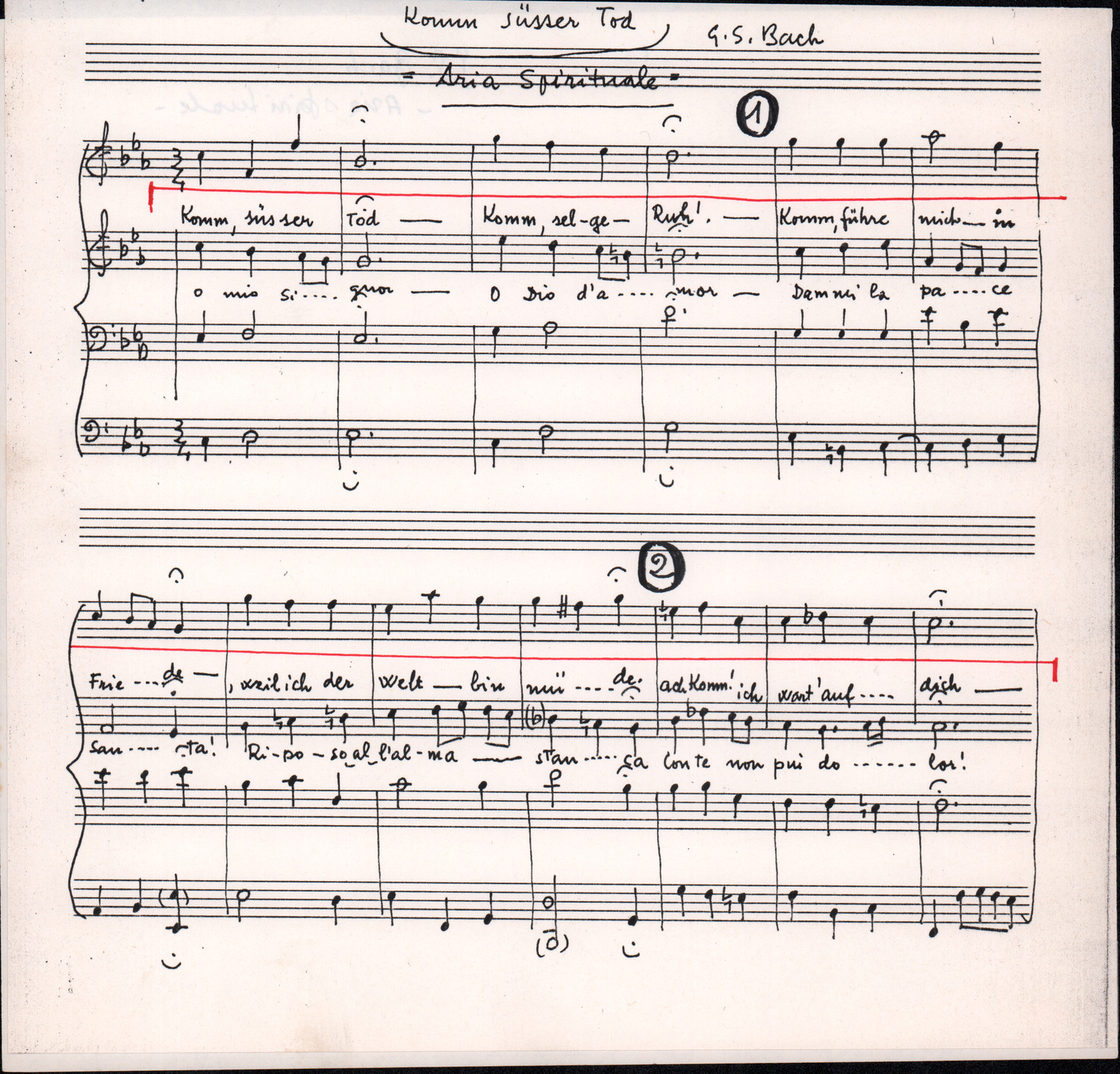 D.4.2.16 - Partitura manoscritta dell’aria Komm süsser Tod di J. S. Bach. 2 cc. fotocopiate.