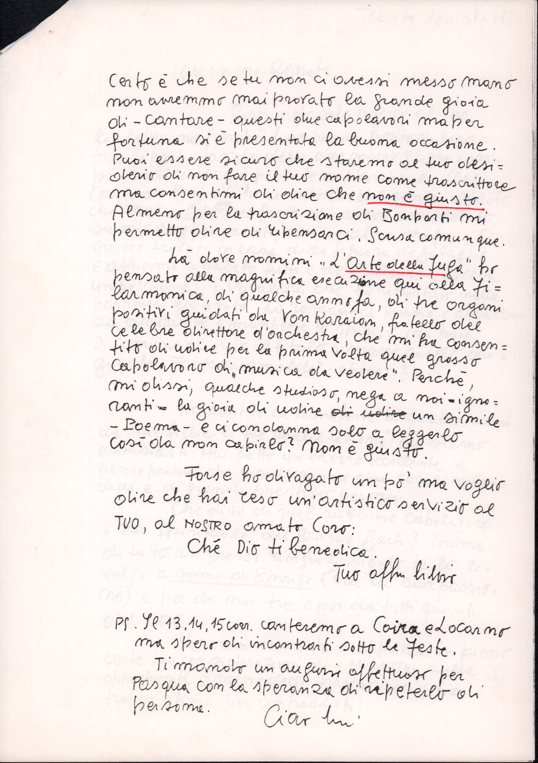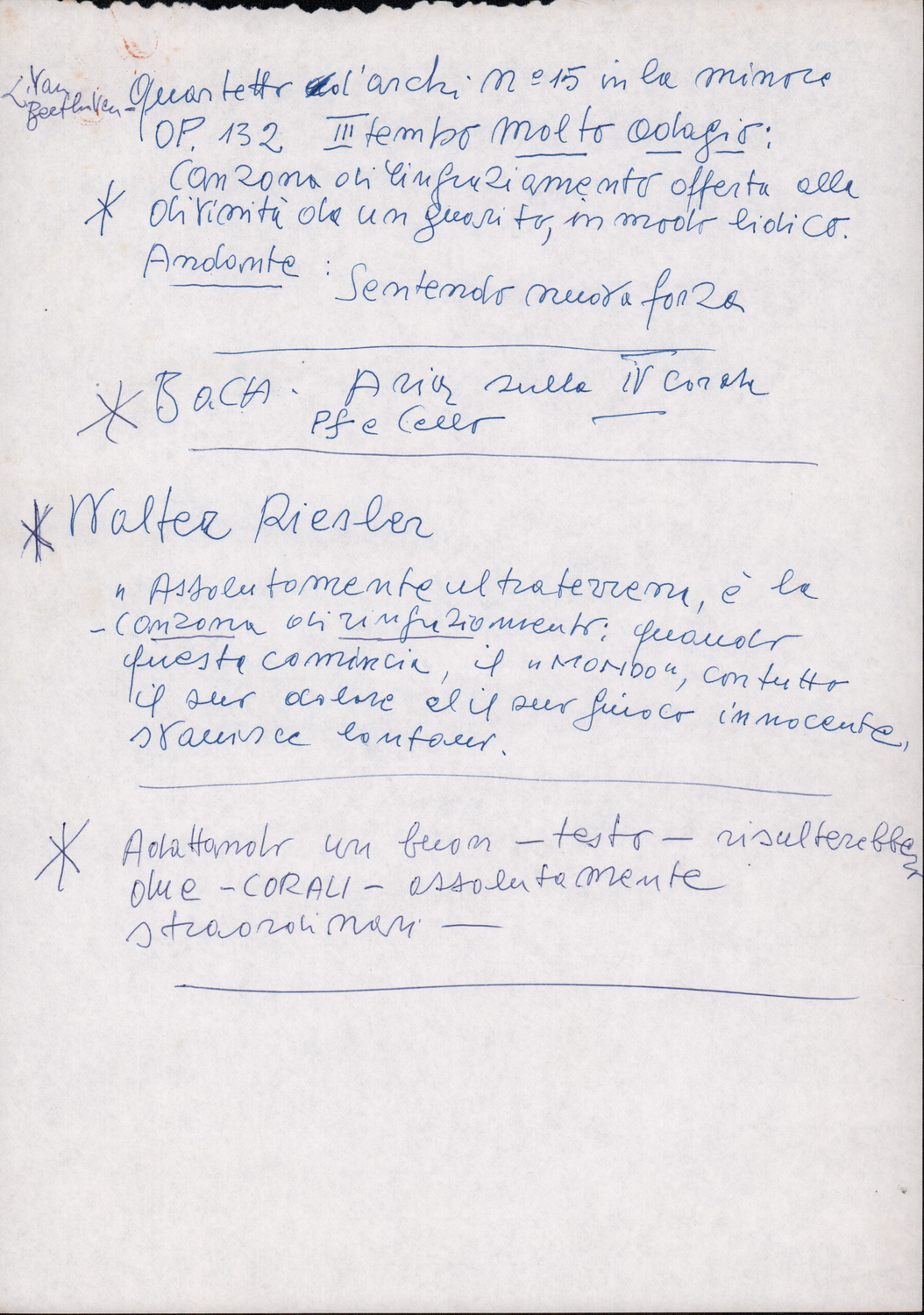 D.4.2.18 - Nota di Silvio Pedrotti relativa a brani di Beethoven e Bach. 1 c.