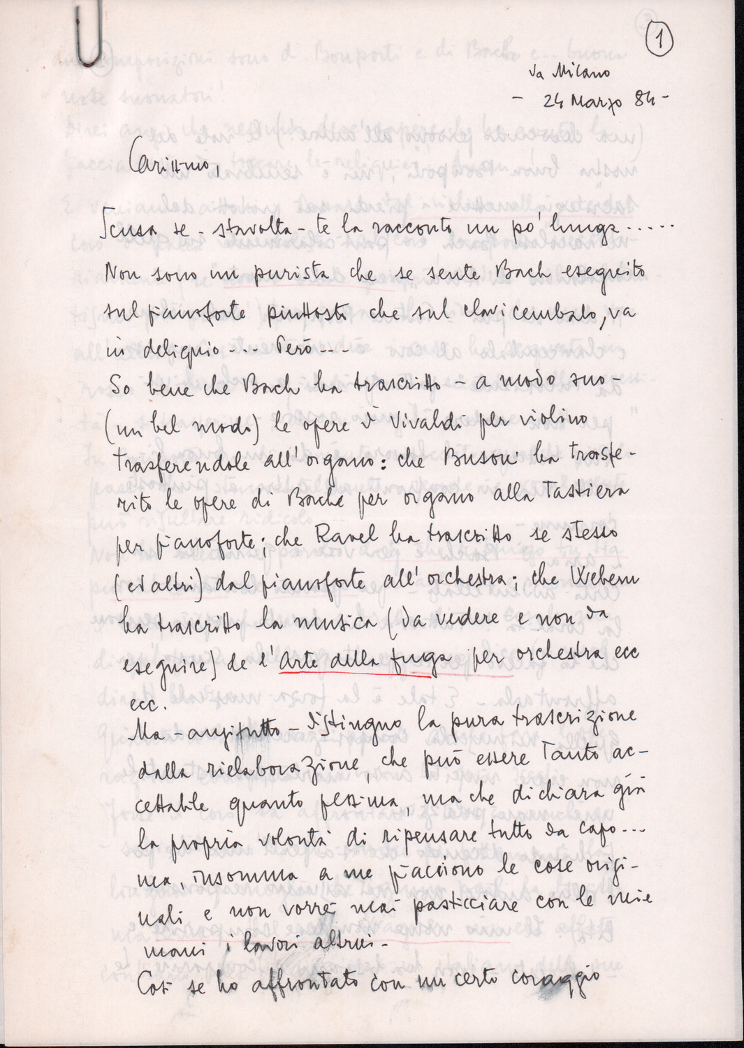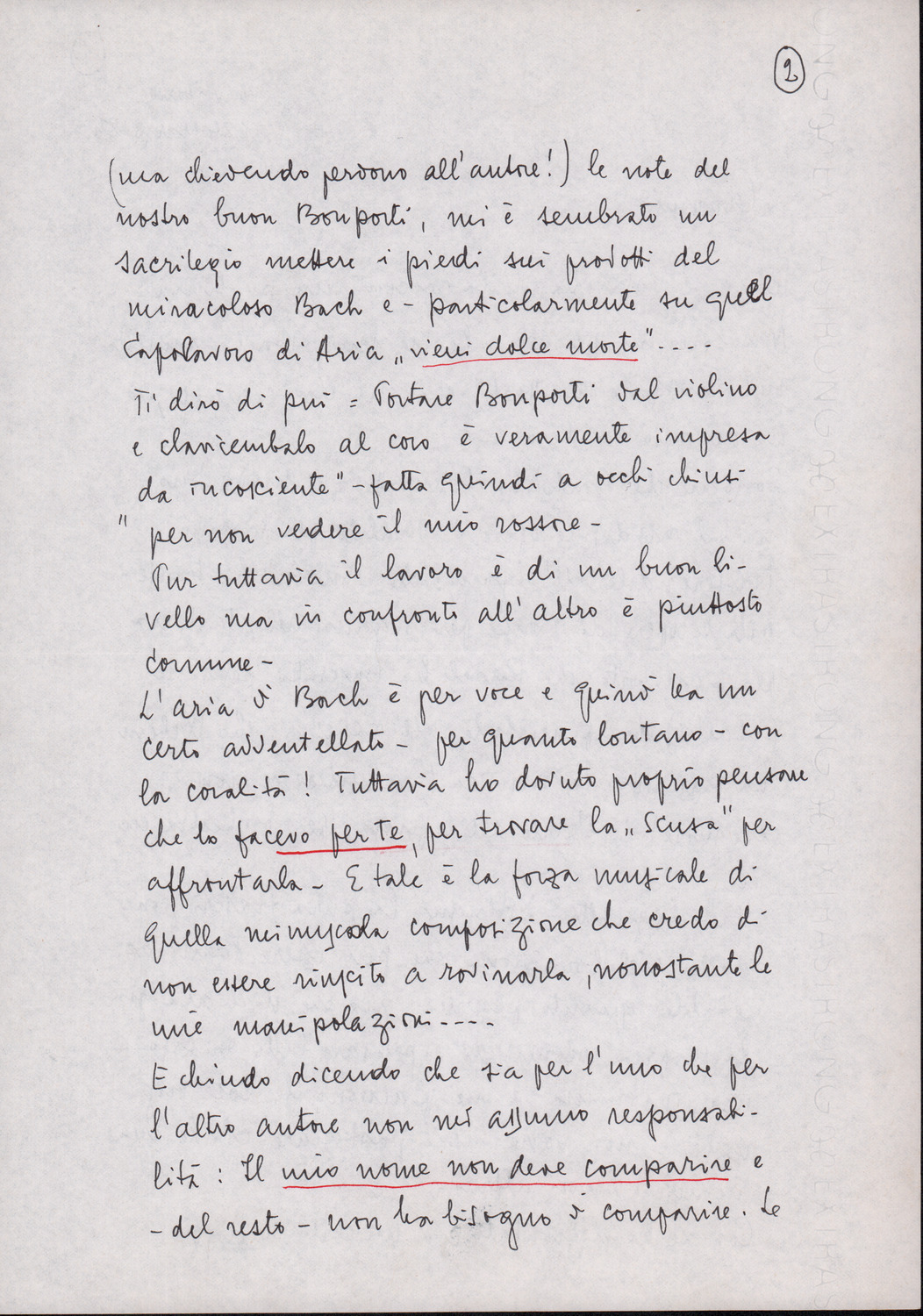 D.4.2.1 - Nota di Silvio Pedrotti relativa all’aria di Francesco Antonio Bonporti Fantasia amabile. Natale 1983. 1 c.
