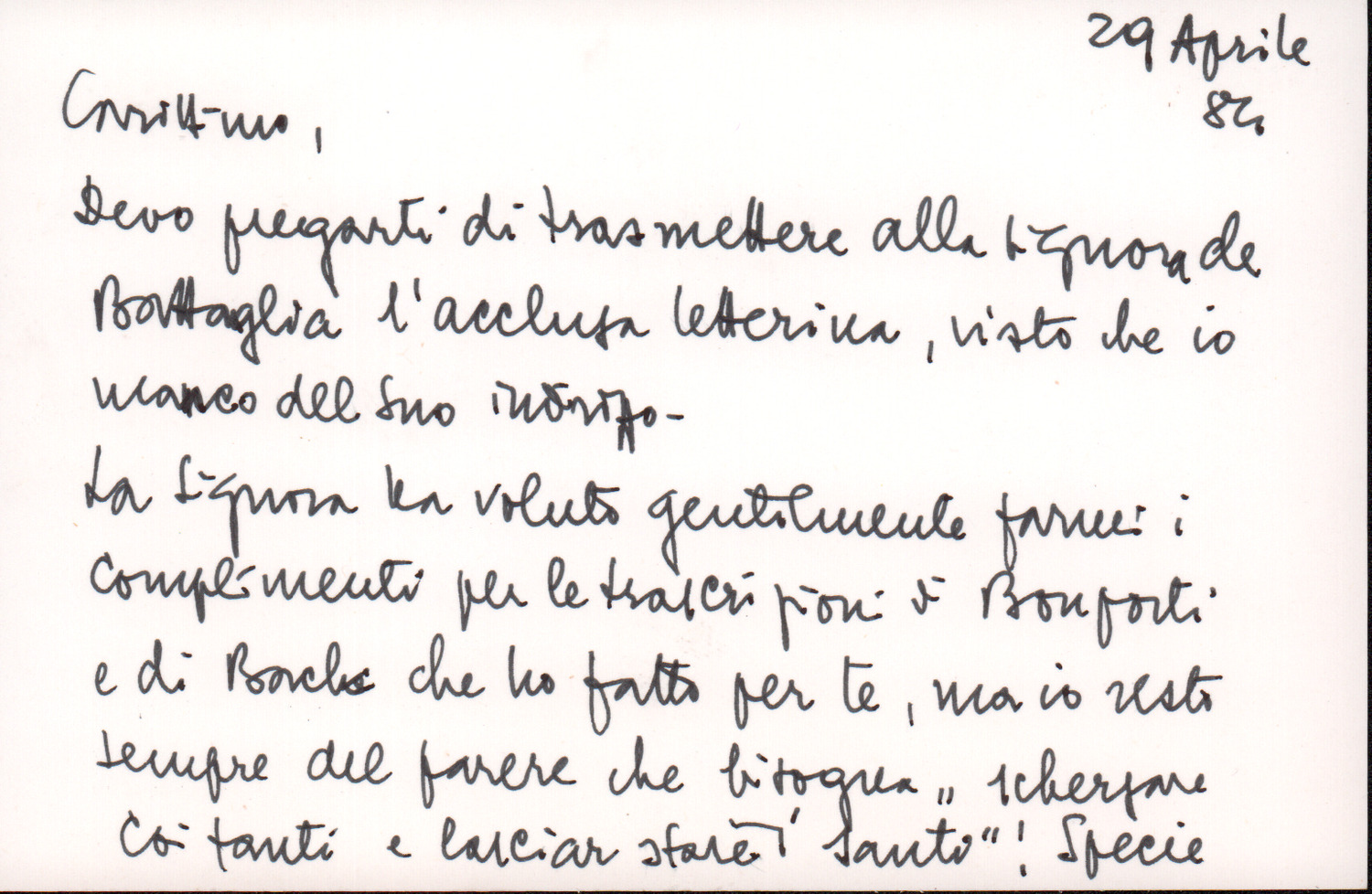 D.4.2.7 - Renato Dionisi a Silvio Pedrotti. S.l., 1984 aprile 29. 1 c.