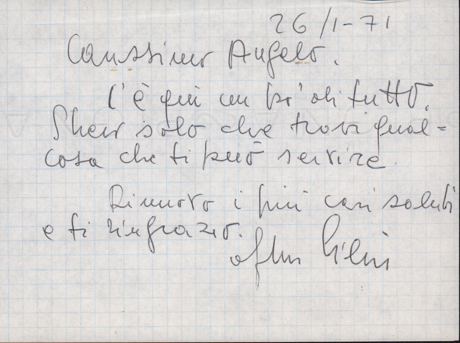 D.4.4.1 - Silvio Pedrotti ad Angelo Agazzani. S.l., 1971 gennaio 26. 1 c.