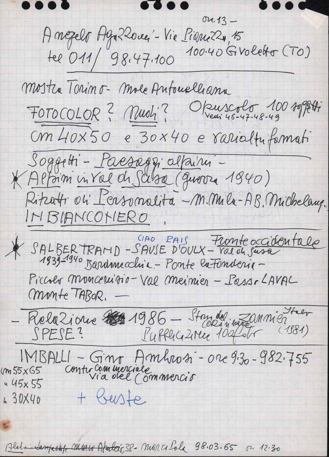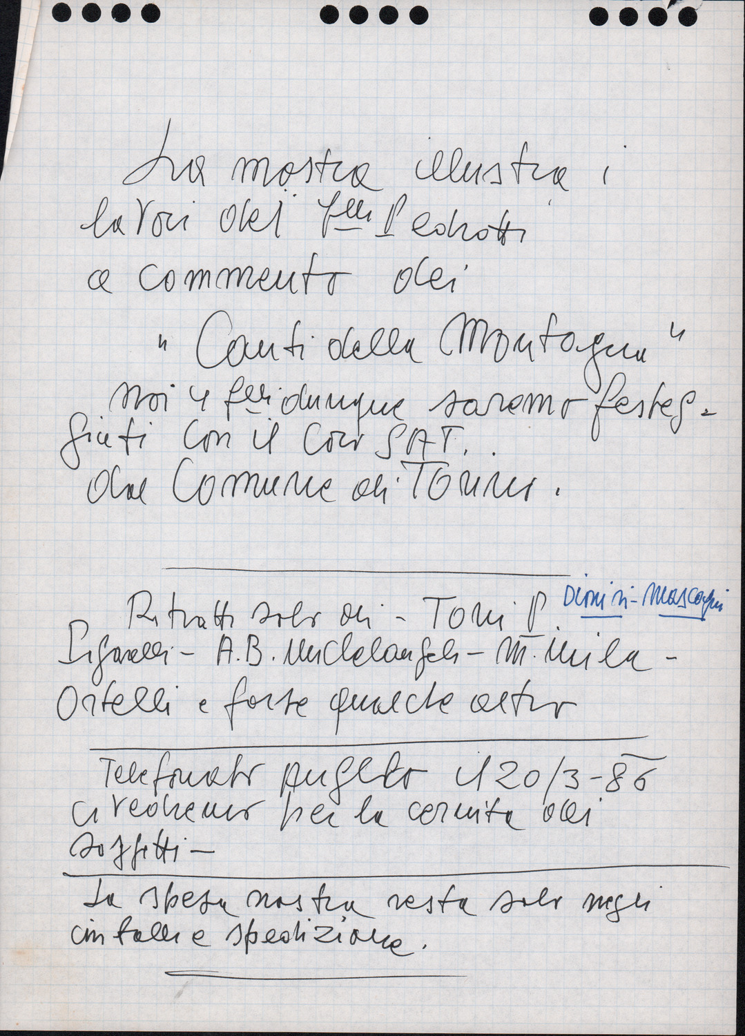 D.4.4.11 - Nota di Silvio Pedrotti relativa ad una mostra fotografica da realizzarsi a Torino, presso la Mole Antonelliana. 1986. 3 cc.