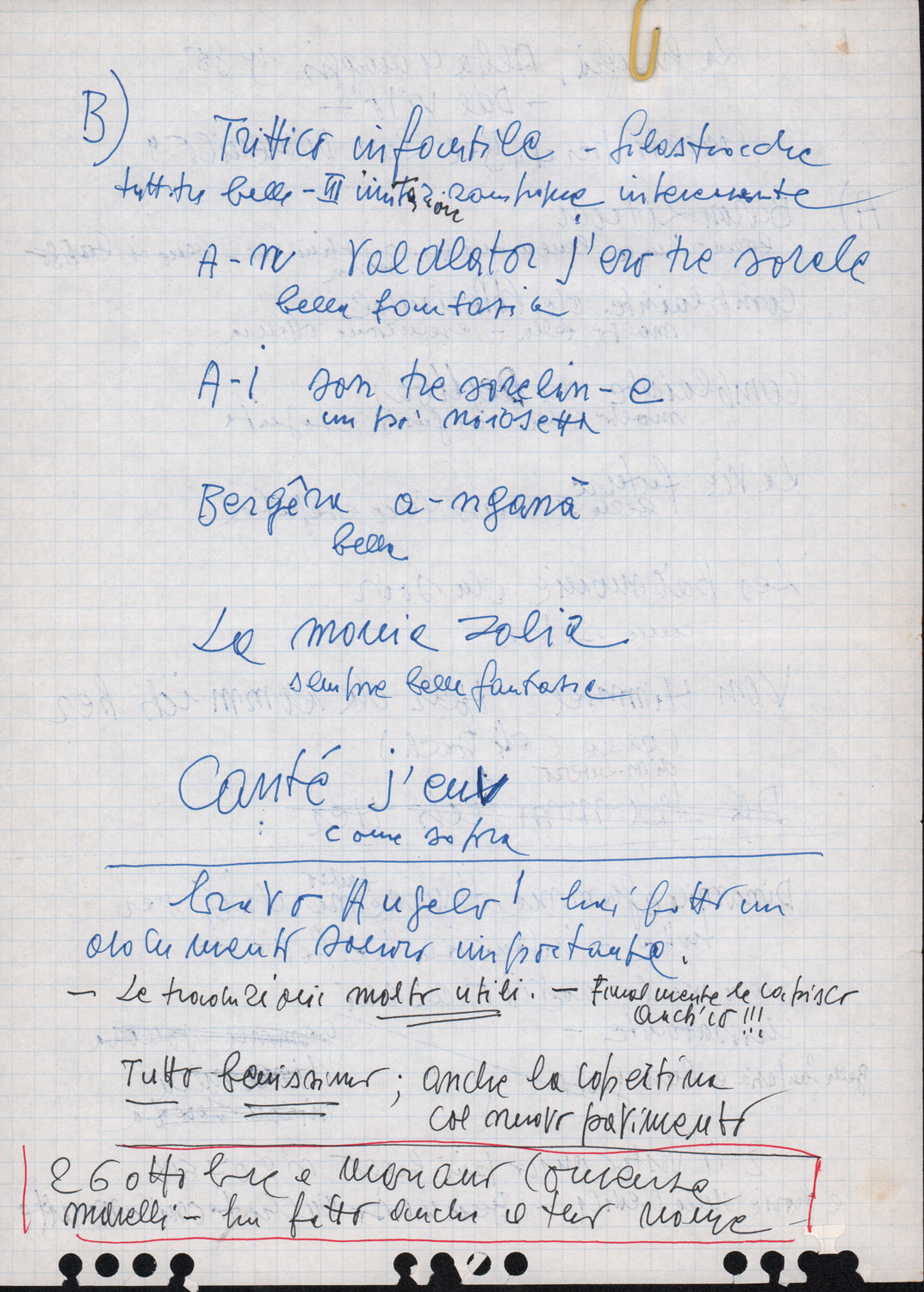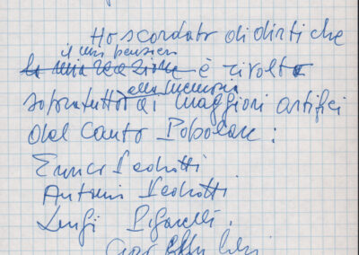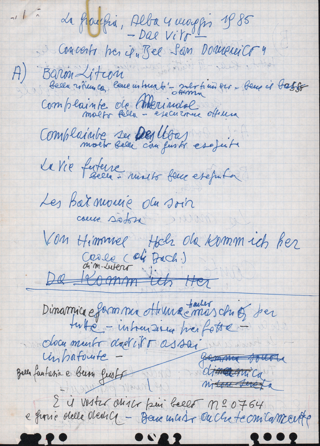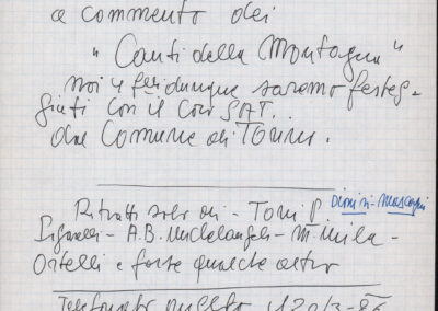 D.4.4.5 - Note di Silvio Pedrotti relative all’esecuzione del coro La Grangia al concerto di Alba, 4 maggio 1985. 1 c.