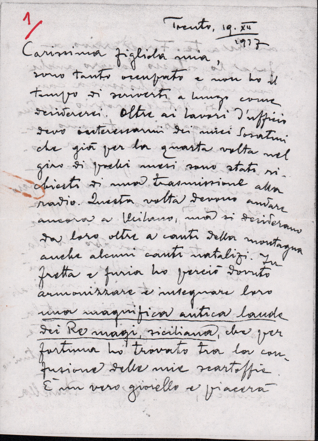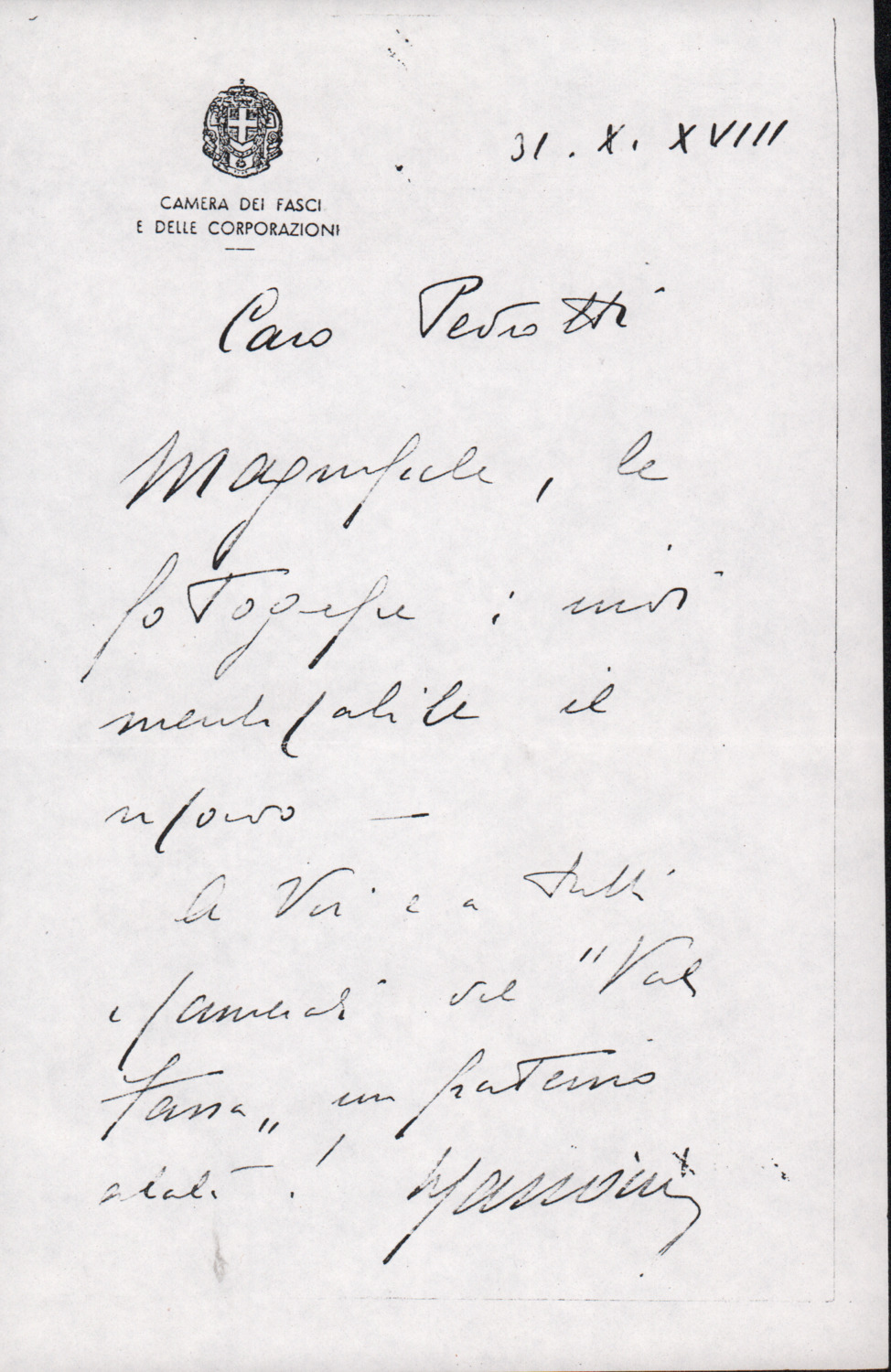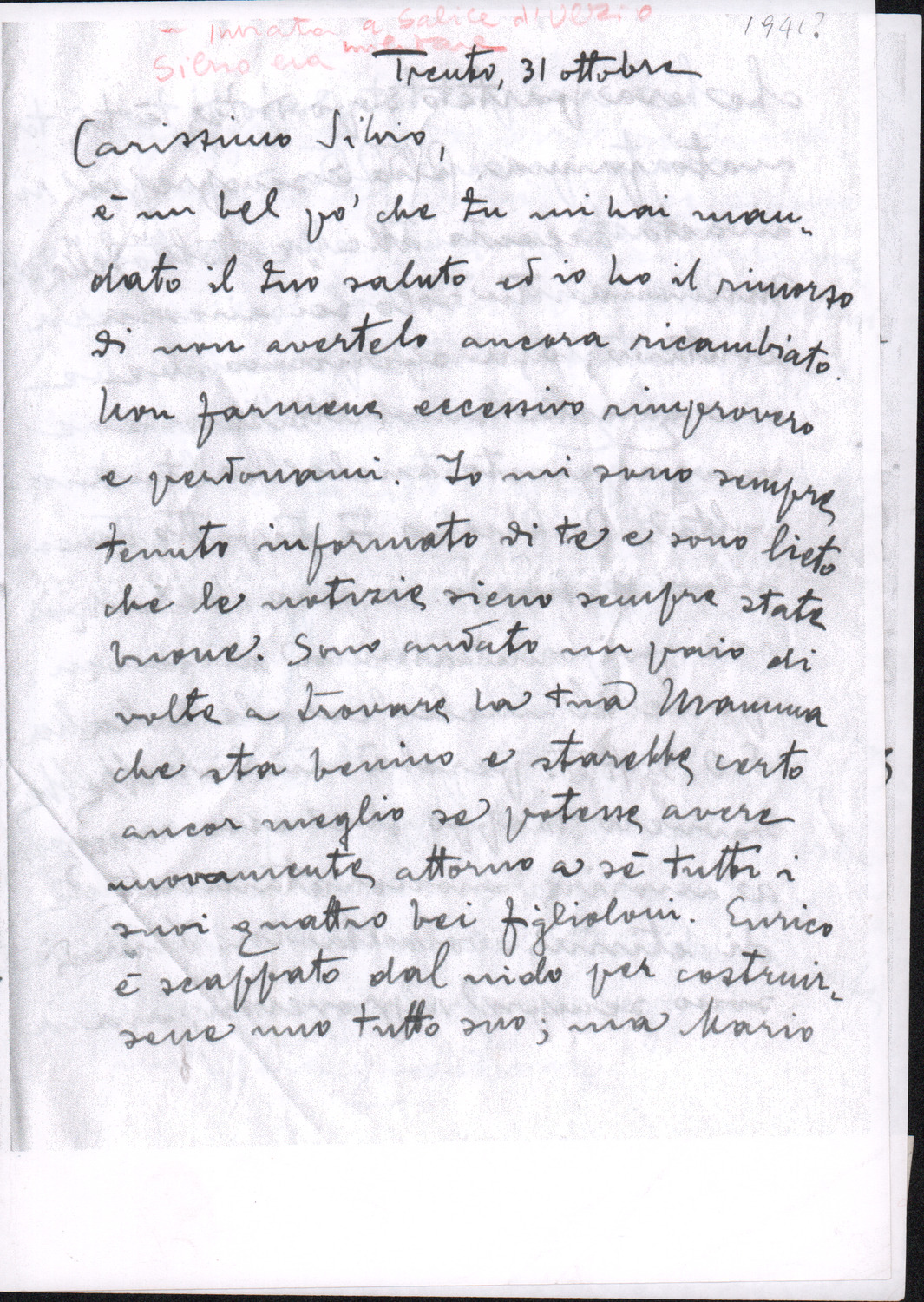 D.5.4.4 - Luigi Pigarelli a Silvio Pedrotti. Trento, 1941? ottobre 31. 2 cc. fotocopiate.