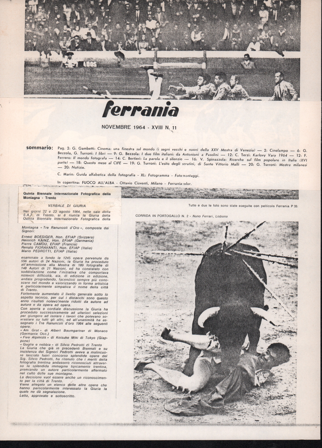 D.5.4.12 - Estratto dalla rivista «Ferrania», 11 (1964), con verbale della Giuria della Quinta Biennale Internazionale Fotografica della Montagna del 1964. 1 c. fotocopiata.