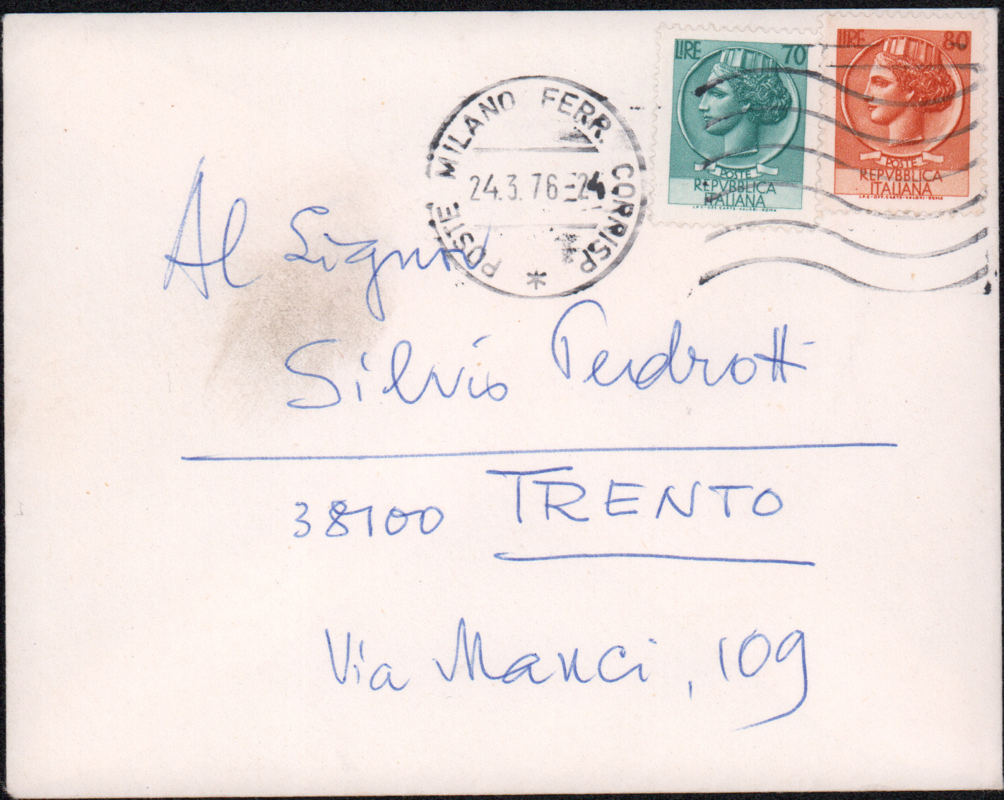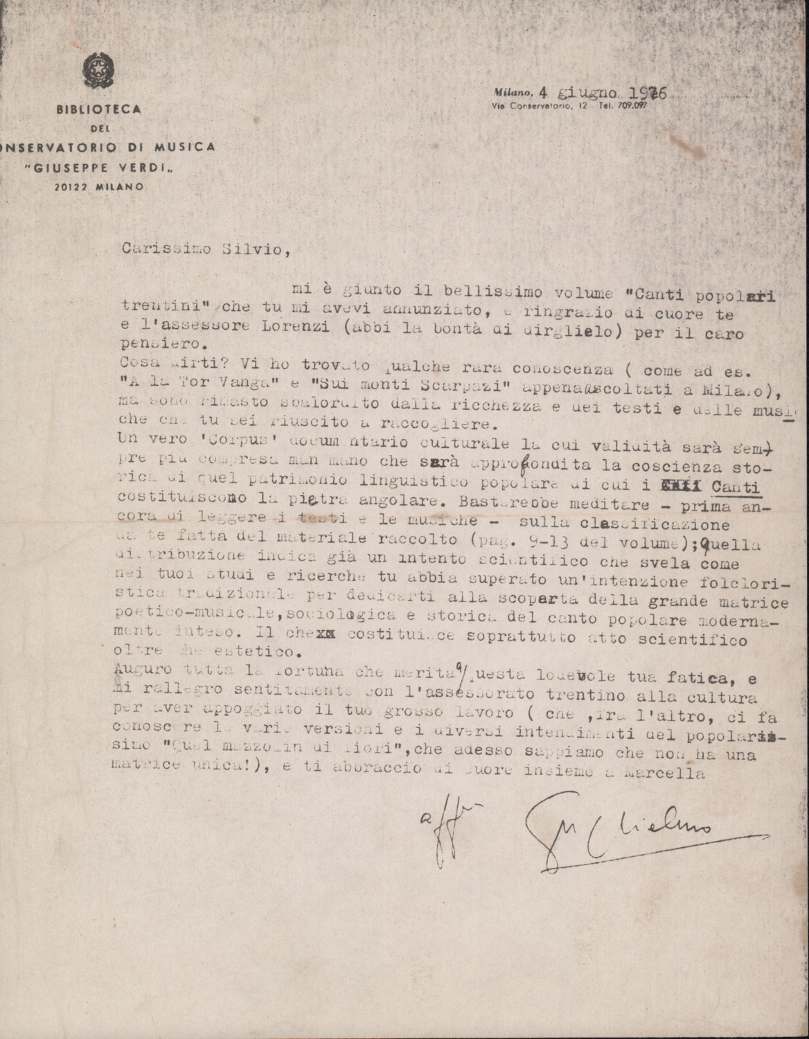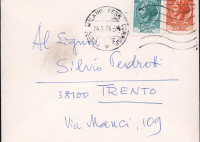 D.5.4.20 - Guglielmo Barblan a Silvio Pedrotti. Milano, 1976 giugno 4. 1 c. manoscritta e 2 cc. fotocopiate.