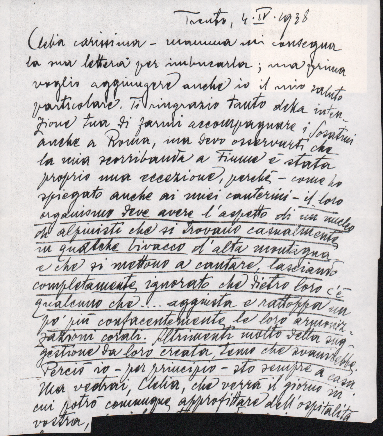 D.5.4.2 - Luigi Pigarelli a Clelia Fago Golfarelli. Trento, 1938 aprile 4. 1 c. fotocopiata.