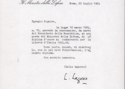 D.5.4.30 - Lelio Lagorio, Ministro della Difesa, a Silvio Pedrotti. Roma, 1983 luglio 25. 2 cc. fotocopiate.