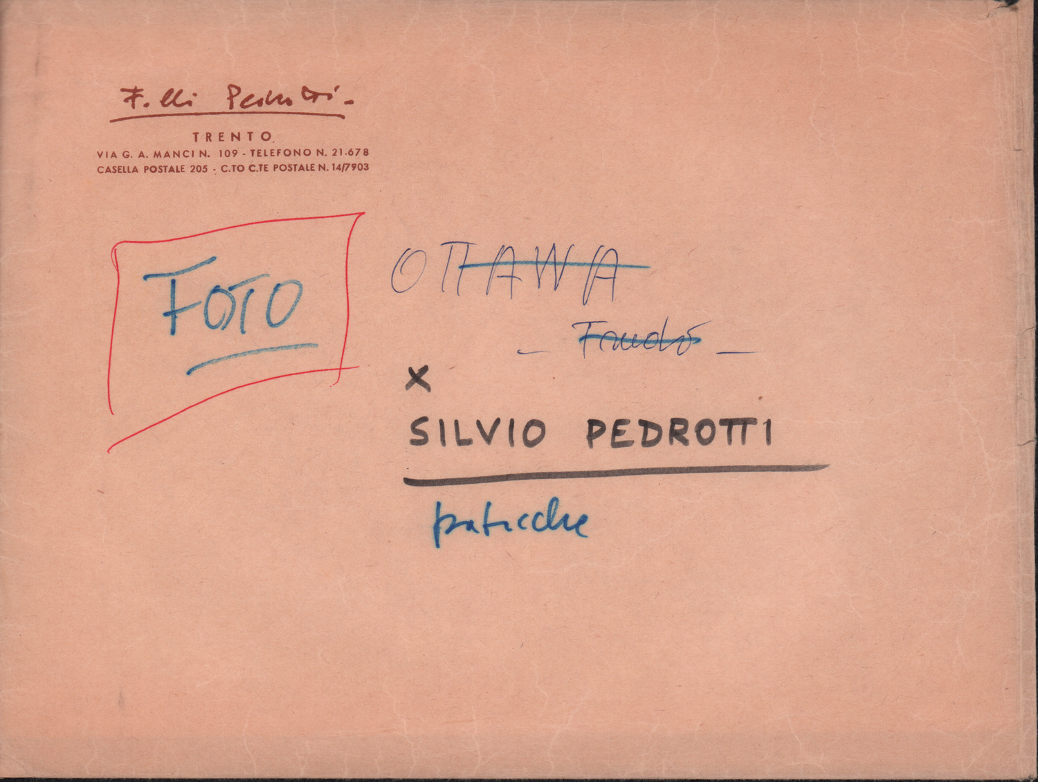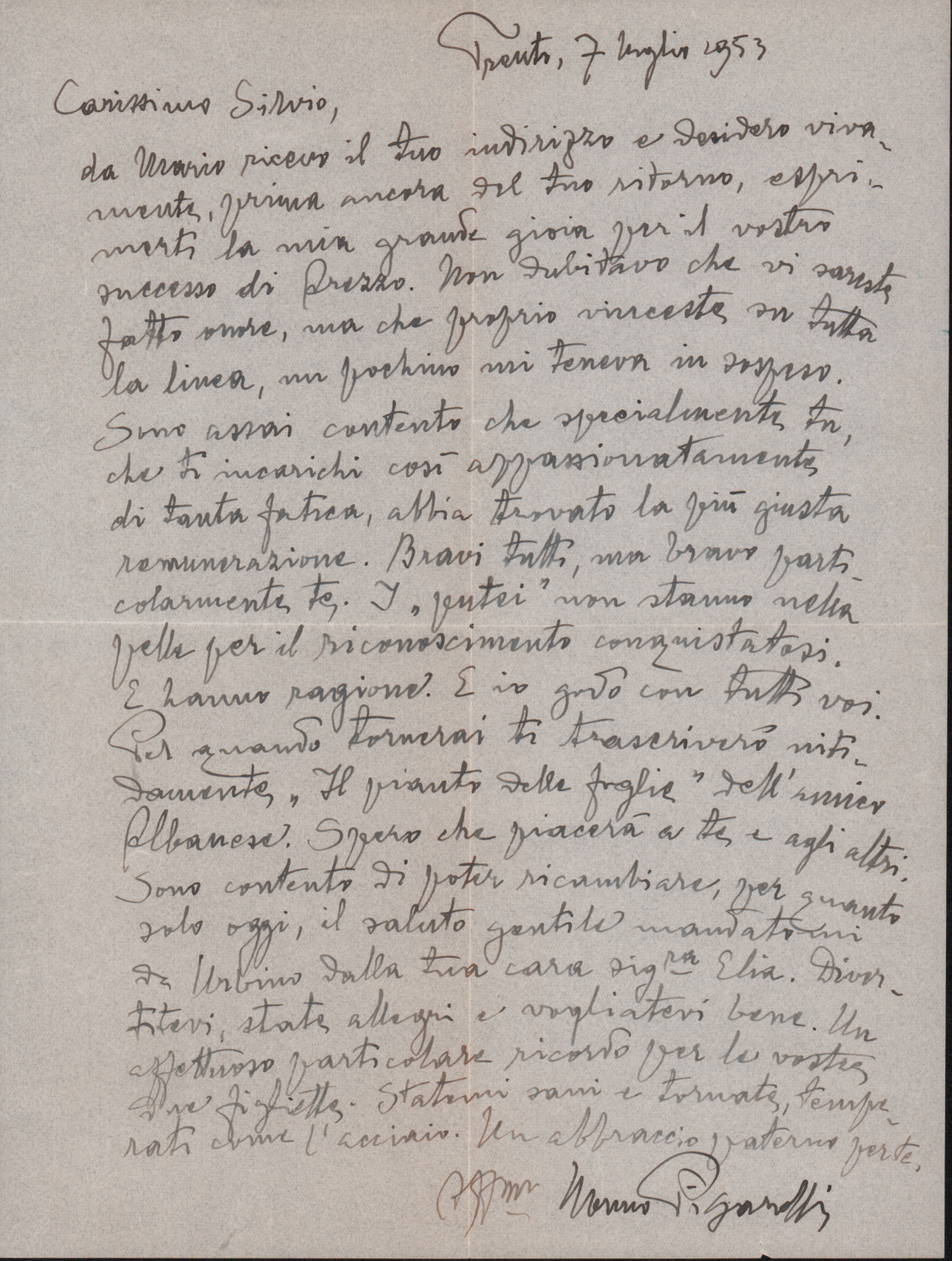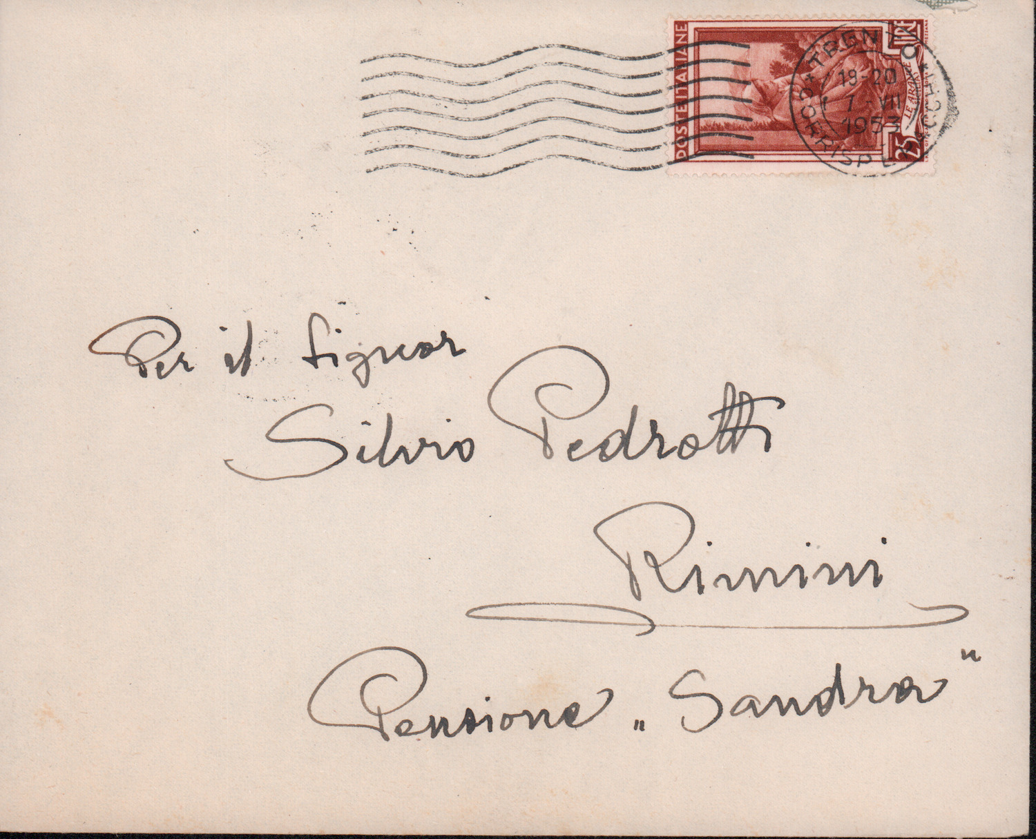 D.5.4.7 - Luigi Pigarelli a Silvio Pedrotti. Trento, 1953 luglio 7. 1 c. manoscritta e 1 c. fotocopiata in busta.