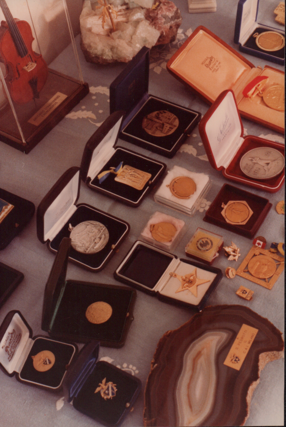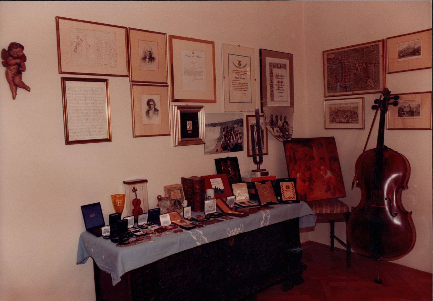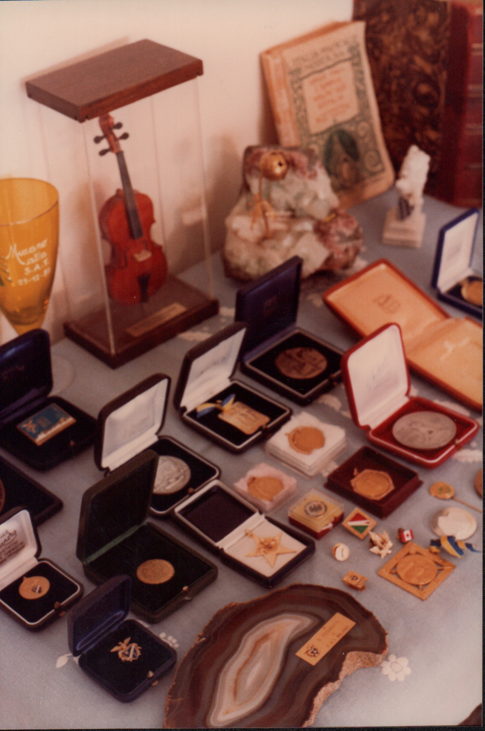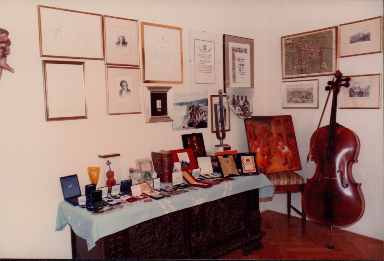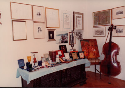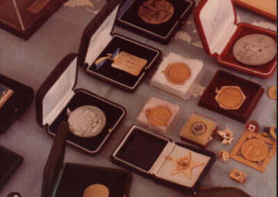D.5.4.33 - Composizione di premi e riconoscimenti esposti in casa di Silvio Pedrotti. 5 fotografie e 5 copie in una busta.