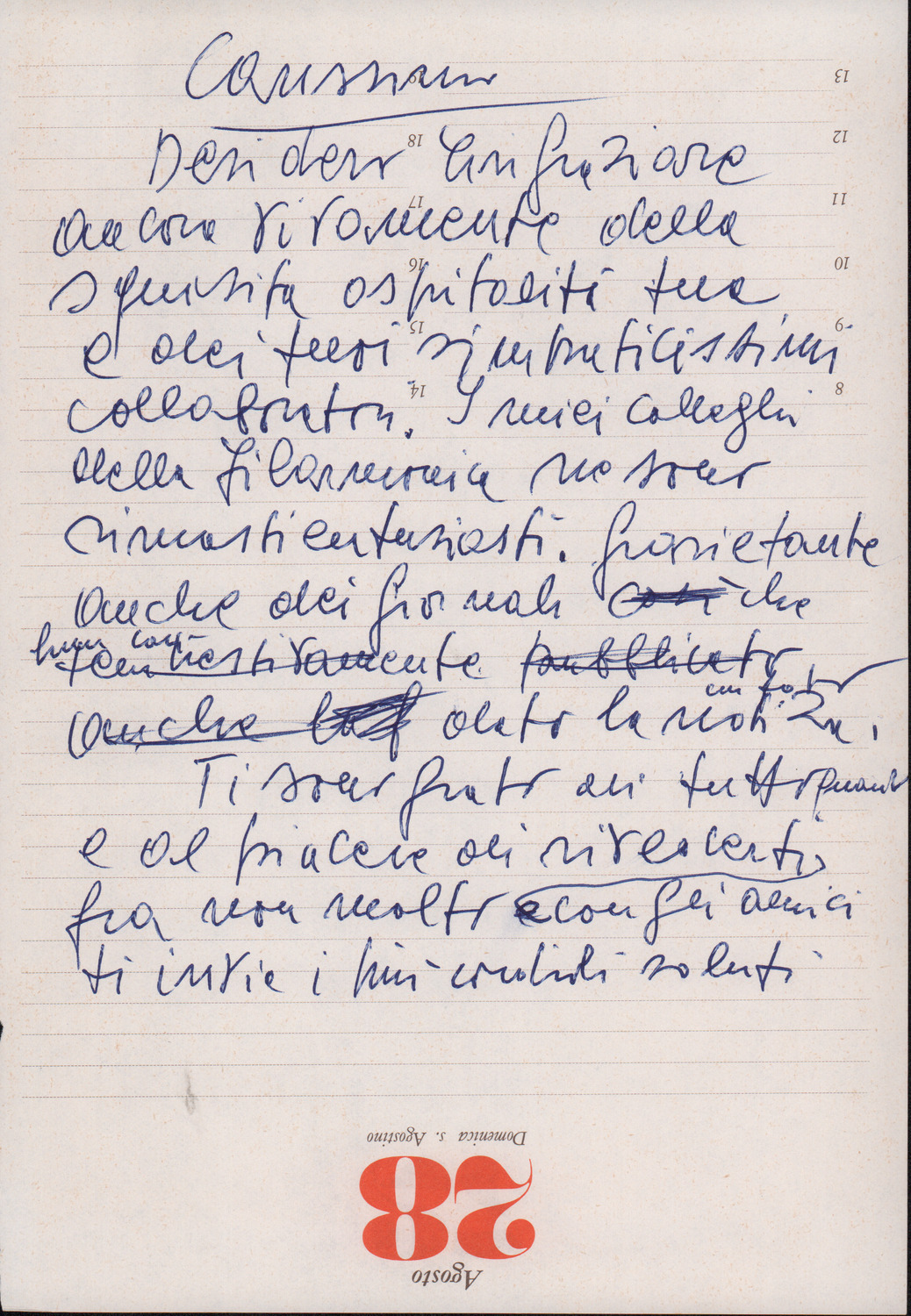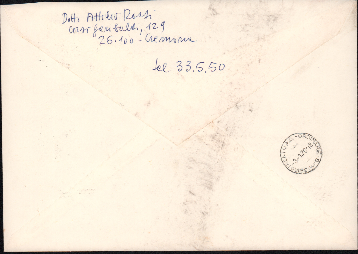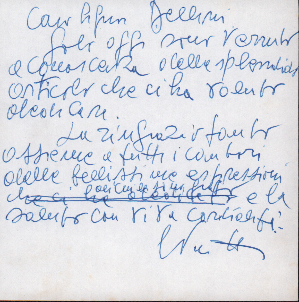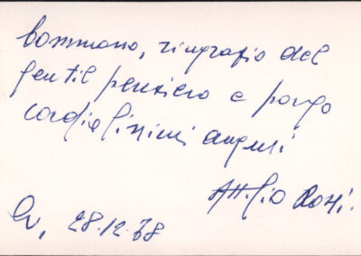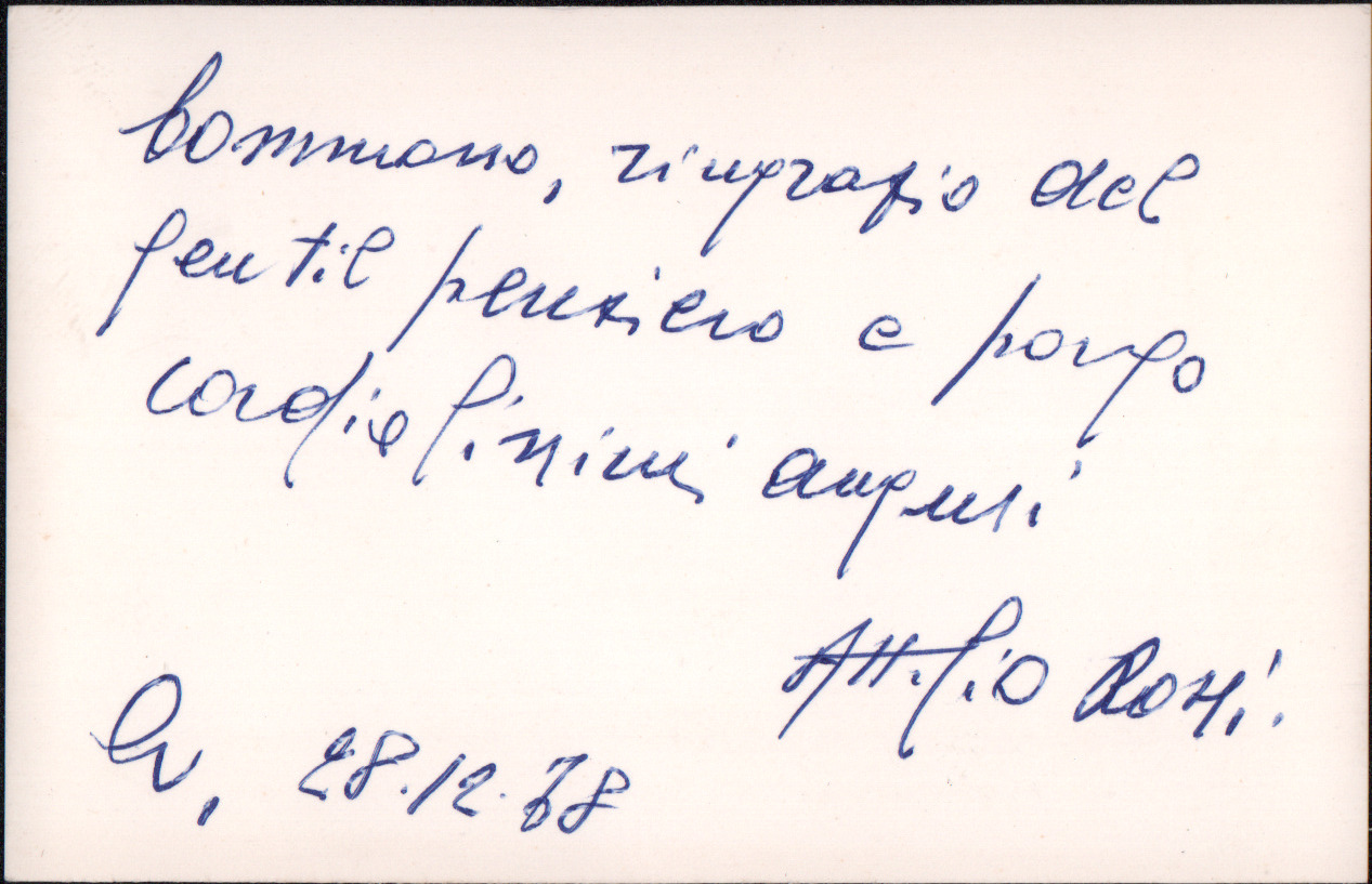 D.6.10.5 - Attilio Rossi, Presidente del CAI di Cremona, a Silvio Pedrotti. Cremona, 1978 dicembre 28. 1 biglietto.