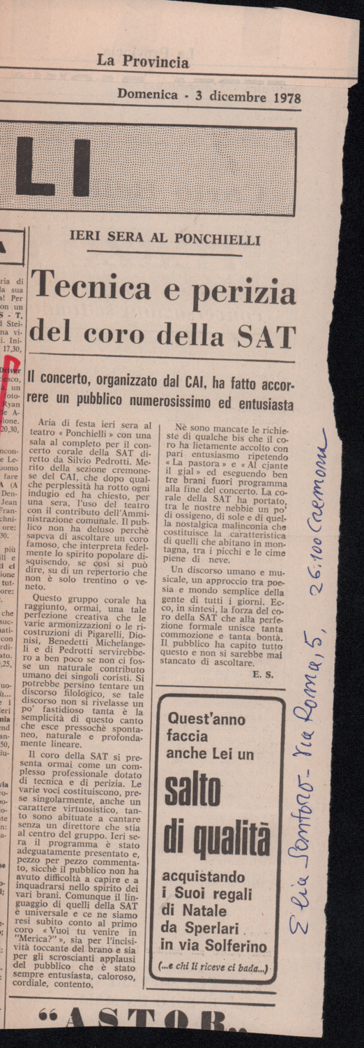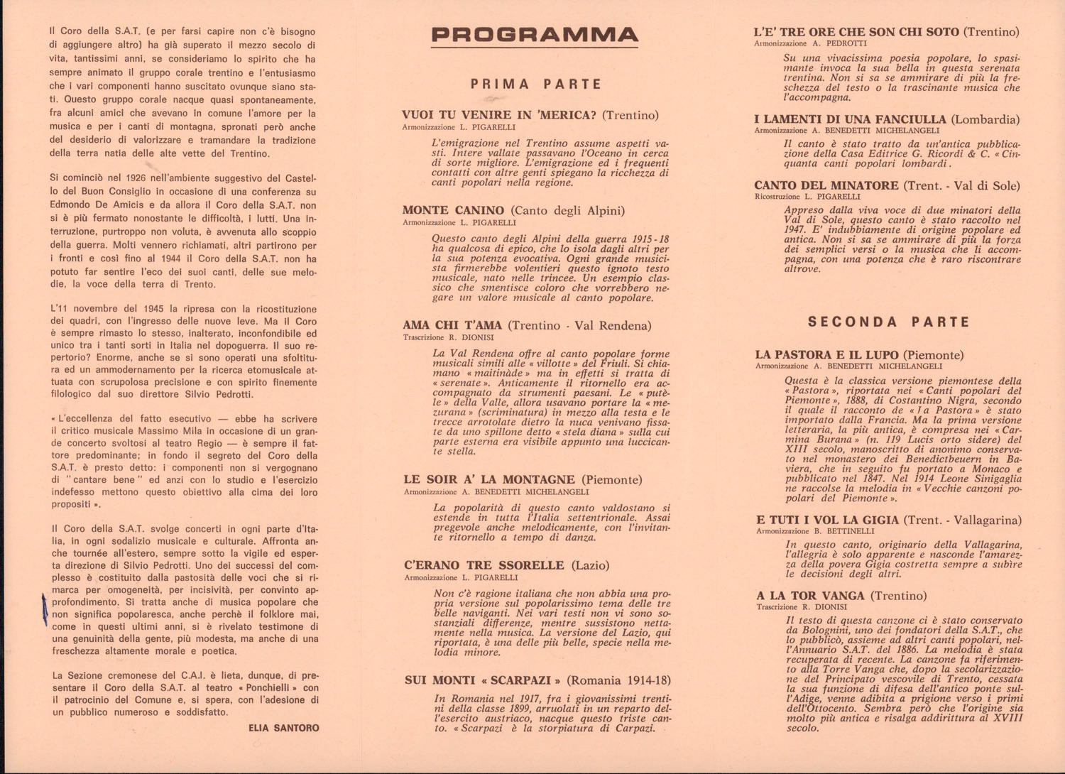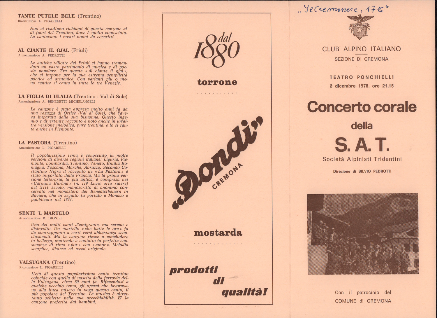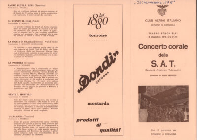 D.6.10.2 - Programma del concerto del Coro della SAT al teatro Ponchielli di Cremona, 2 dicembre 1978. 1 dépliant.