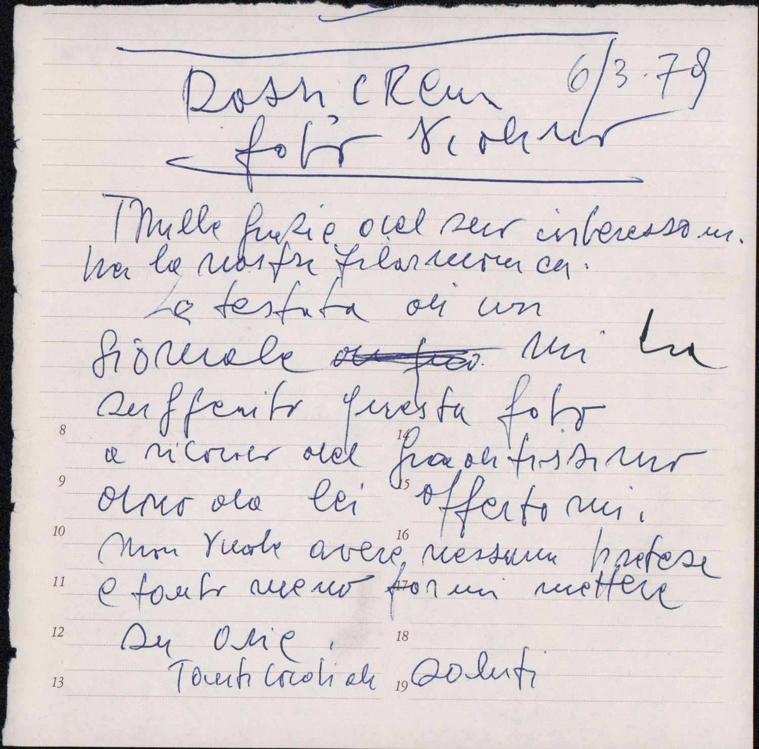 D.6.10.6 - Silvio Pedrotti ad Attilio Rossi. S.l., 1979 marzo 6. 1 c.