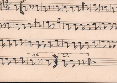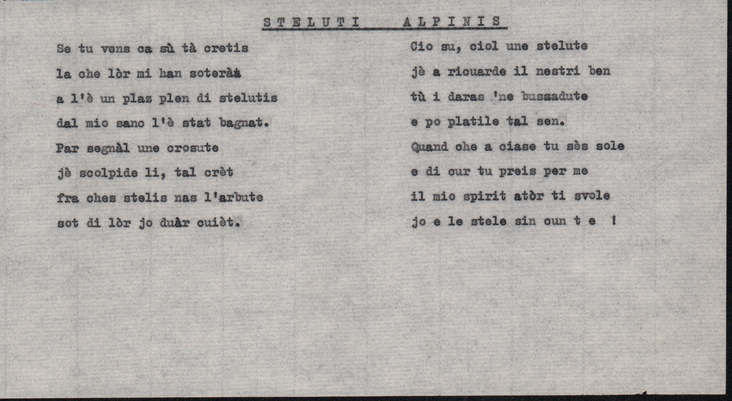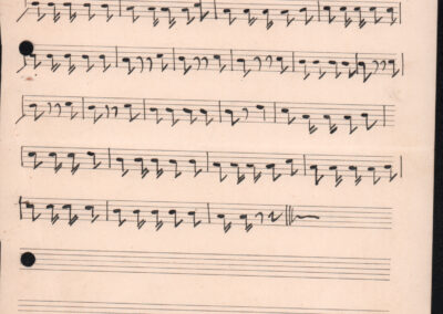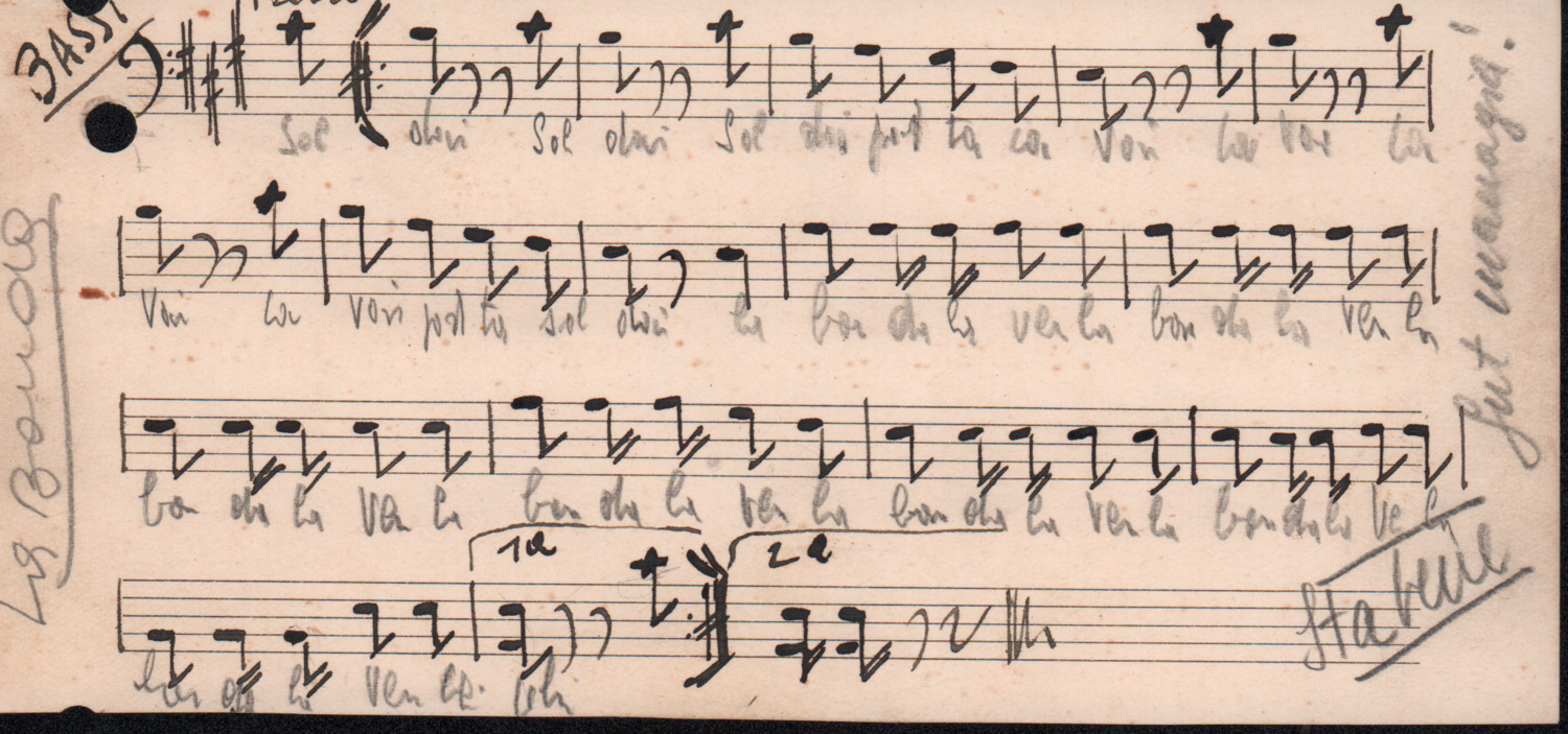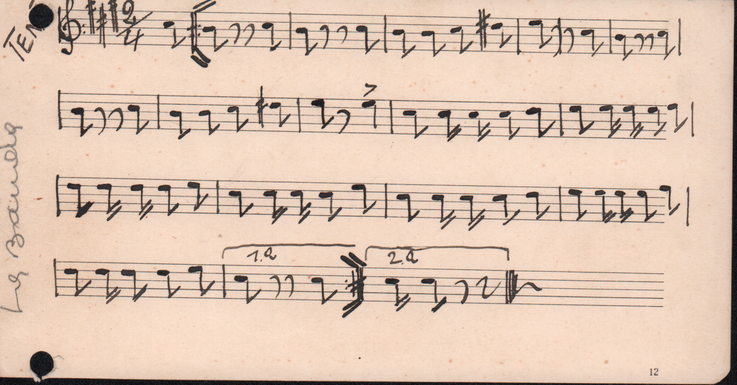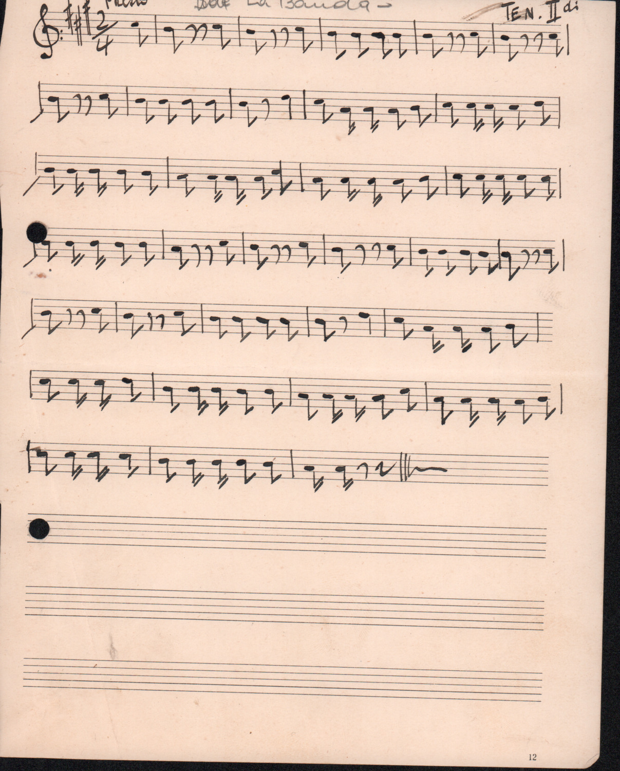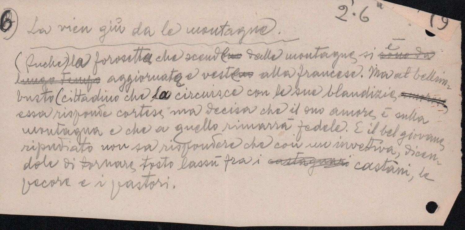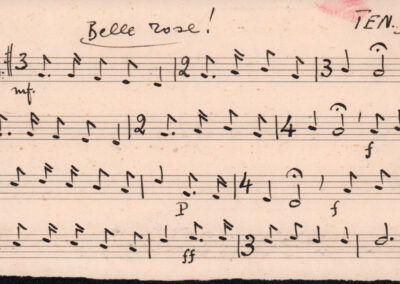 Canti armonizzati da Antonio Pedrotti. Documenti relativi all’armonizzazione di Antonio Pedrotti dei canti Il tuo fazzolettino, Son barcarol, La vien giù dalle montagne, Ta-Pum, Que fais-tu la bas (Belle rose du printemps), Di qua di là del Piave, Il tuo fazzolettino, La banda, Quattro cavai che trottano. 1946-1958. 1 fascicolo.