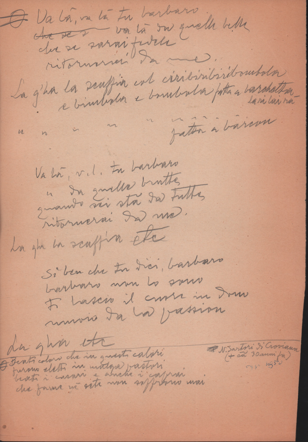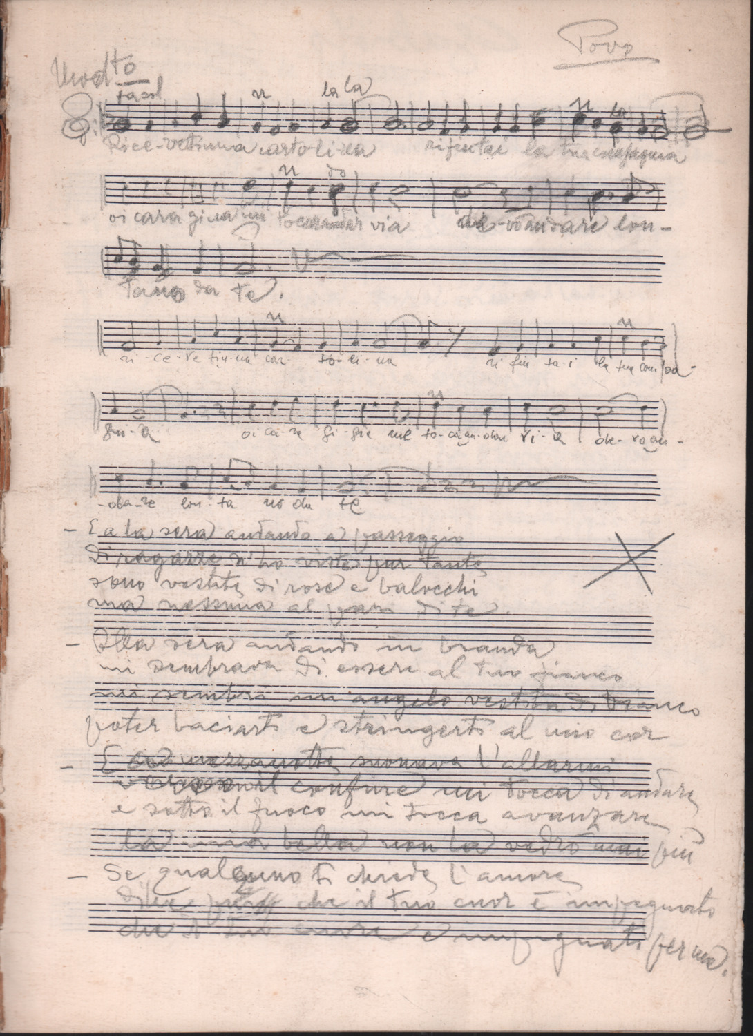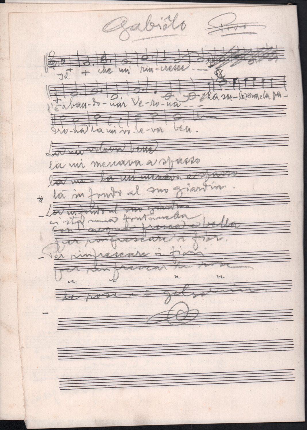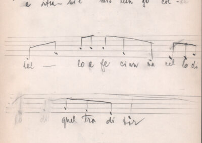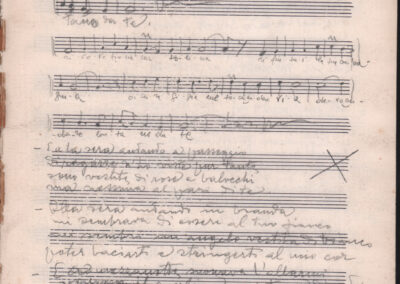 F.12.1.13 - Partitura dei canti Vuoi tu saper e La ga la scùfia,manoscritto di Luigi Pigarelli su foglio con pentagramma. 2 c.