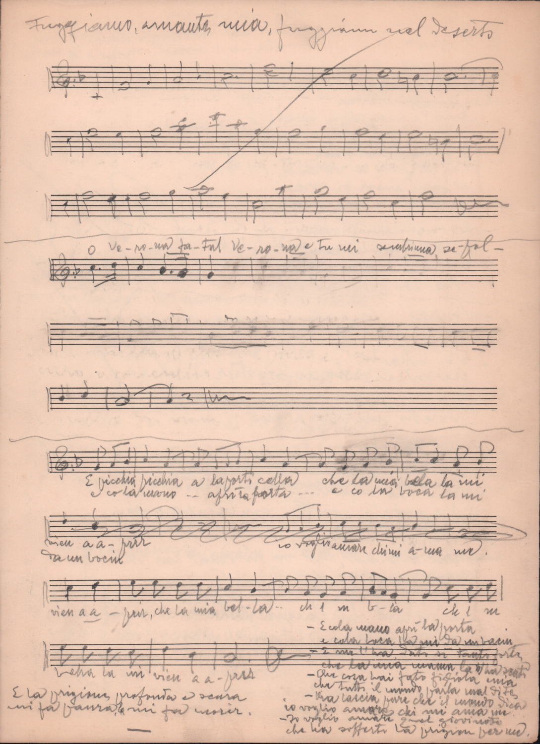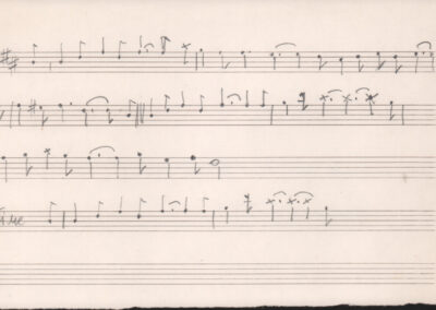 F.12.1.11 - Partitura dei canti O fucile e Attraverso valli e monti, manoscritti su foglio con pentagramma. 1 c.