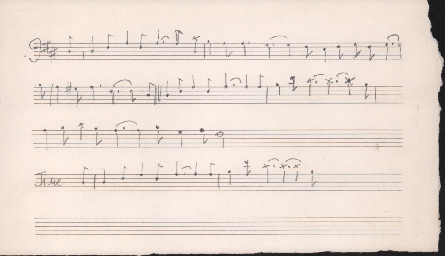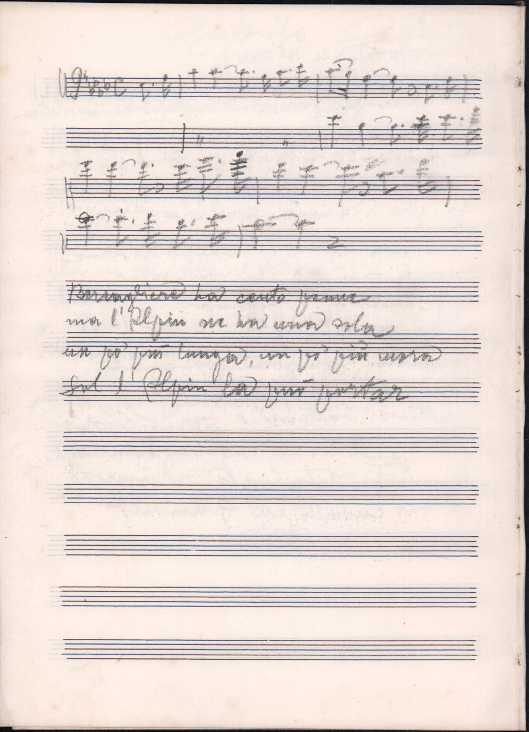 F.12.1.5 - Partitura di canto non identificato, manoscritto su foglio con pentagramma. 1 c.