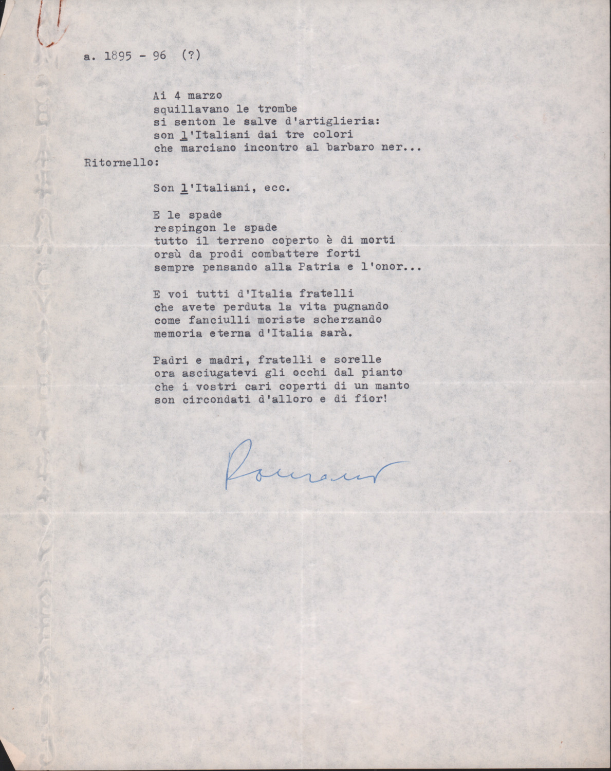 F.12.1.6 - Testo di filastrocca. 1 c. dattiloscritta.