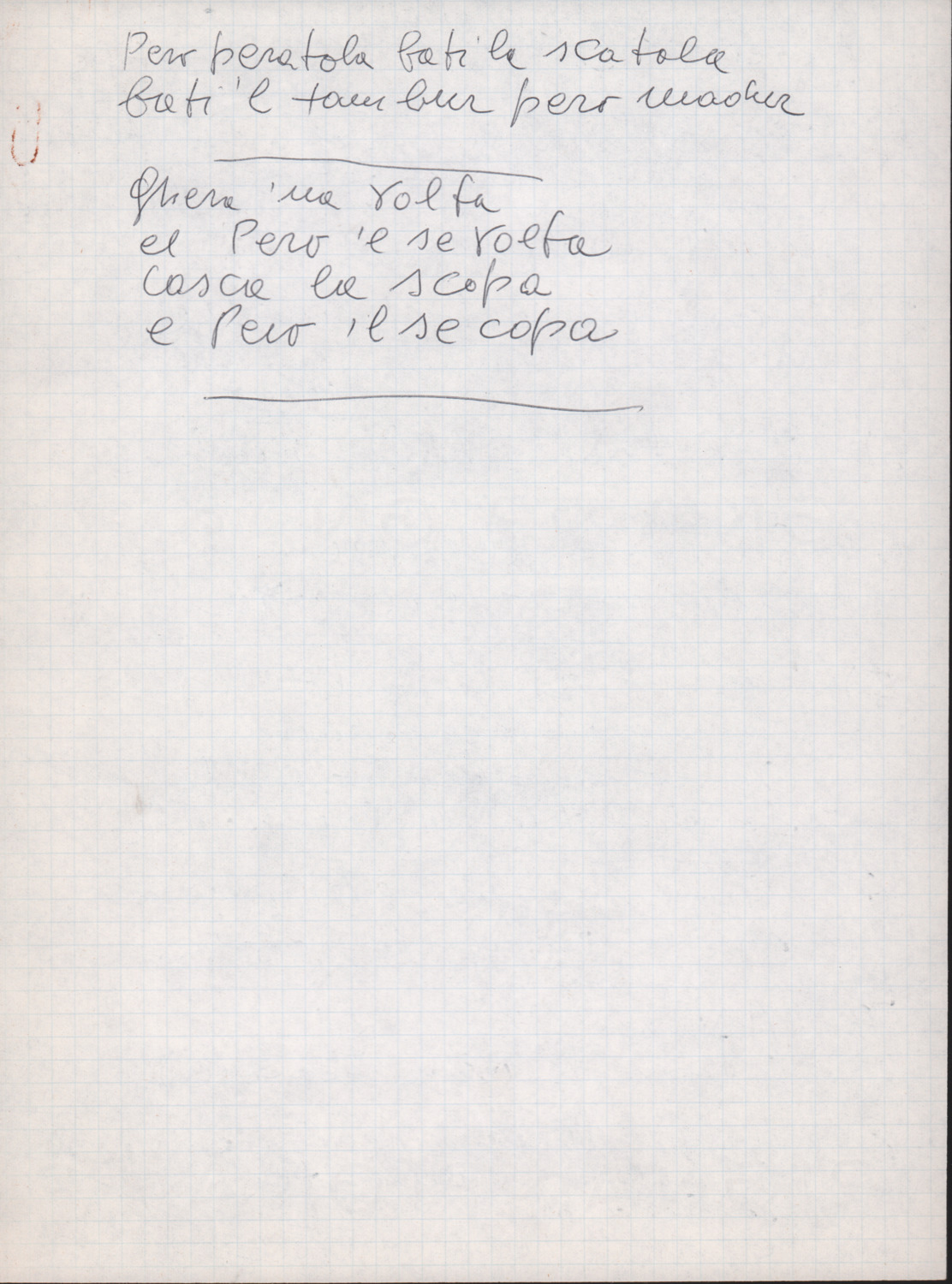 F.12.1.3 - Note manoscritte di Silvio Pedrotti con testi di filastrocche in dialetto trentino. 2 cc.