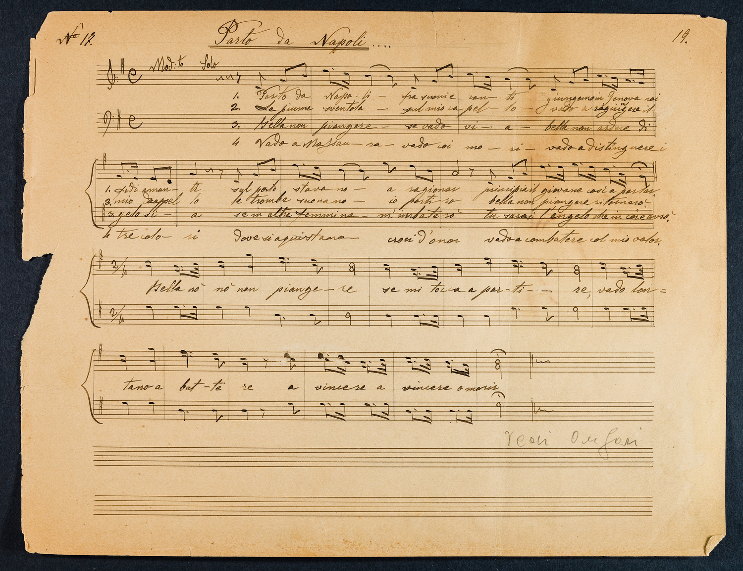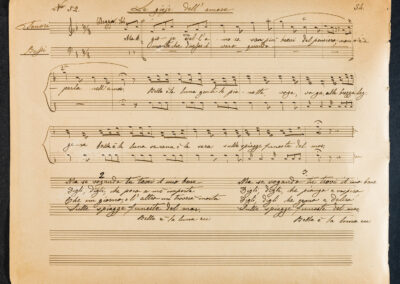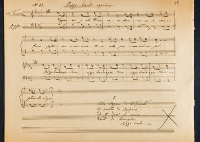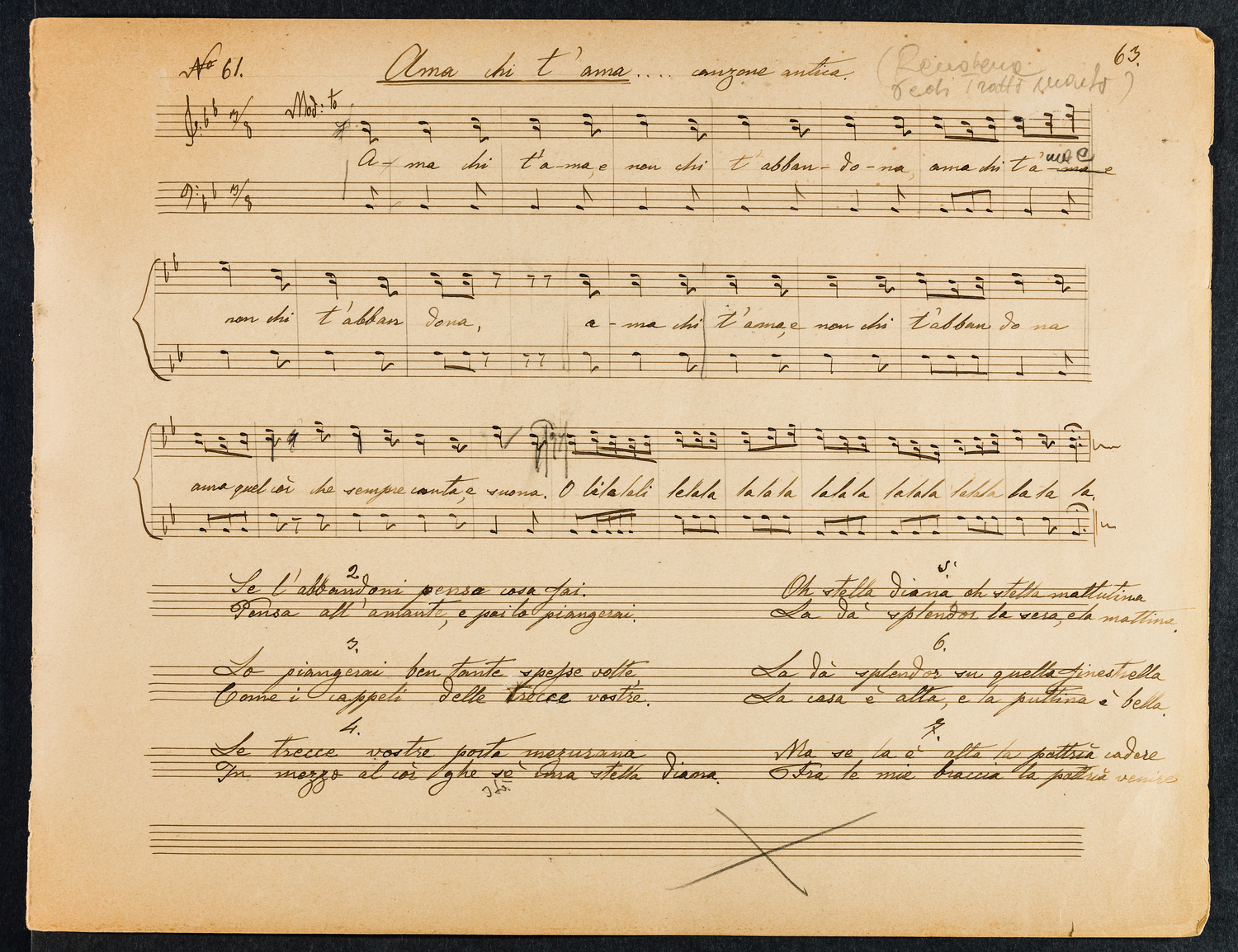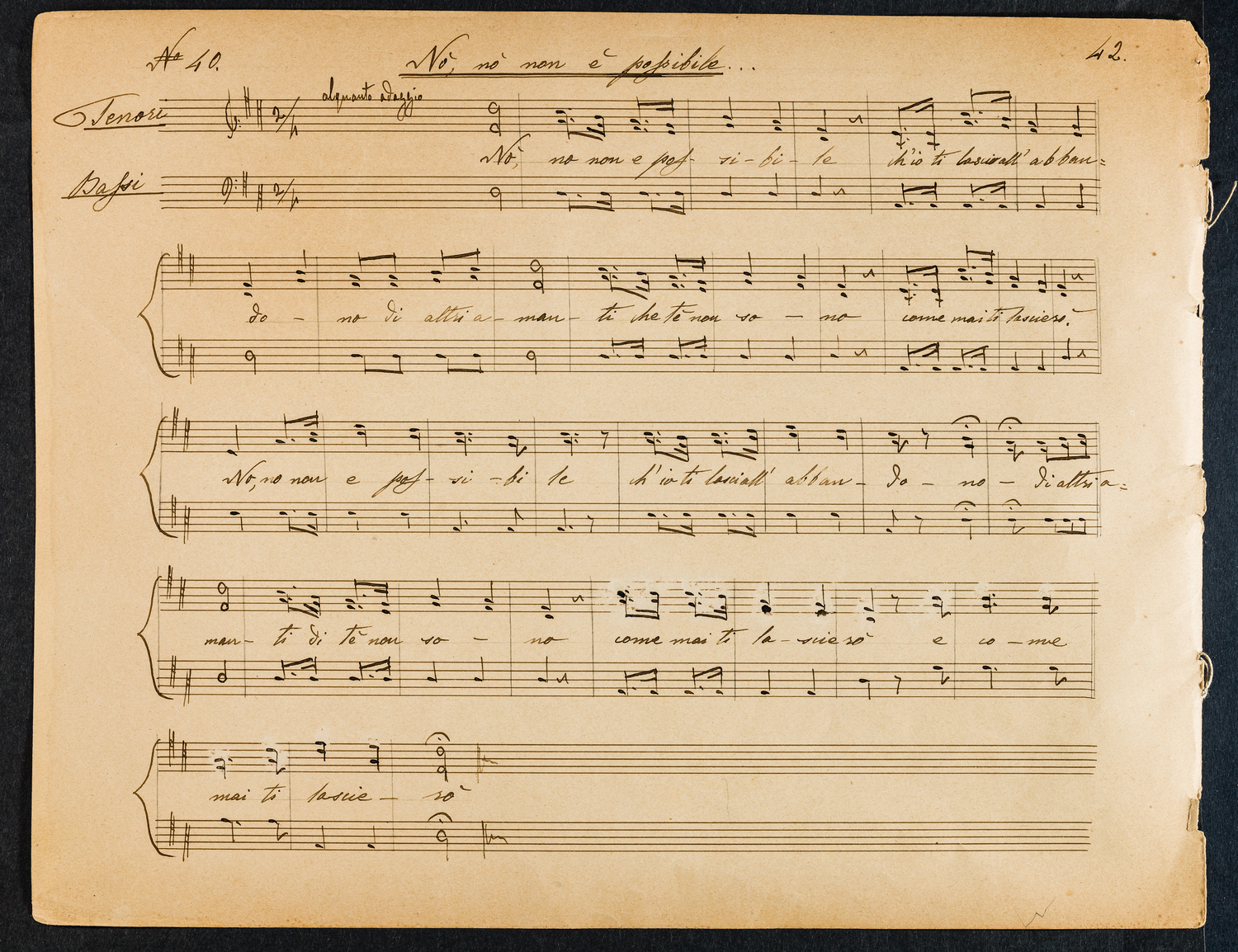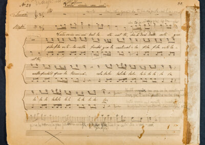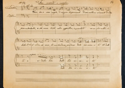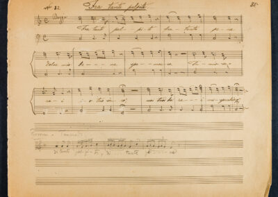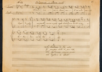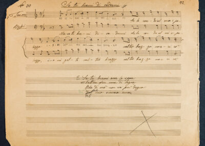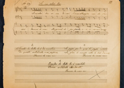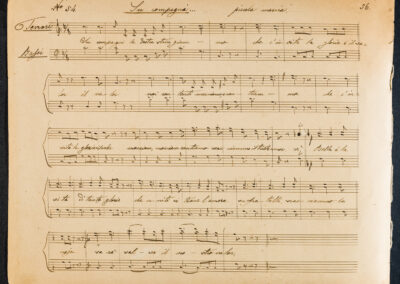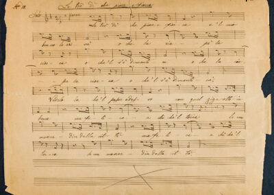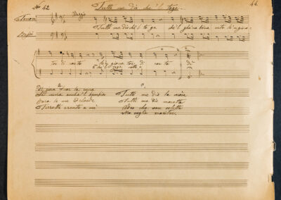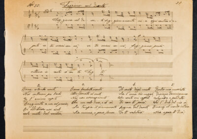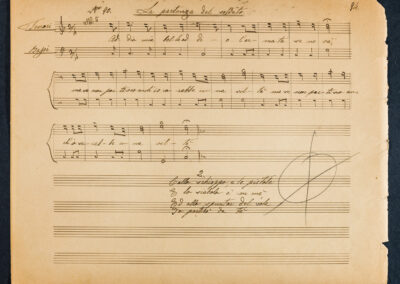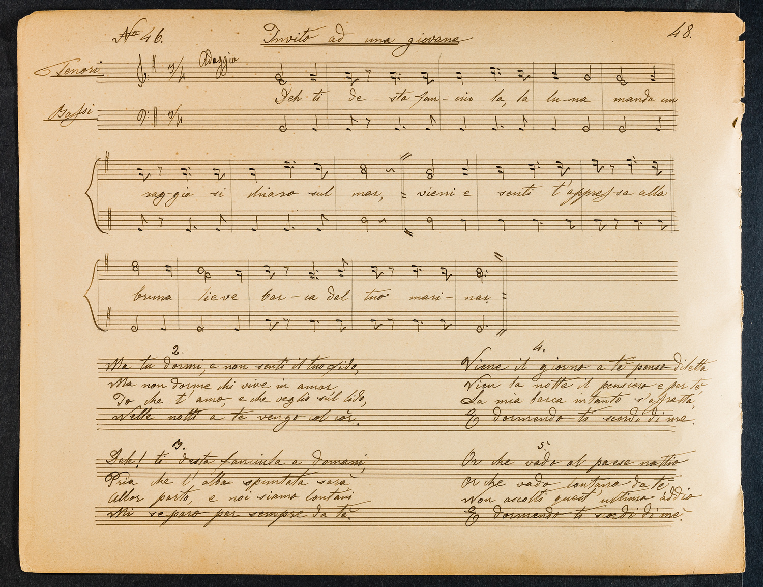 F.4.1.1 - Manoscritto (fine sec. XIX – inizio sec. XX) contenente testo e partitura su pentagramma di 97 canti popolari, donato a Silvio Pedrotti da Raffaello Baldo di Villa Lagarina, conosciuto nel 1936 al corso per caporali maggiori a Vipiteno. 44 cc.; frammentario. Cartulato da 11 a 101.